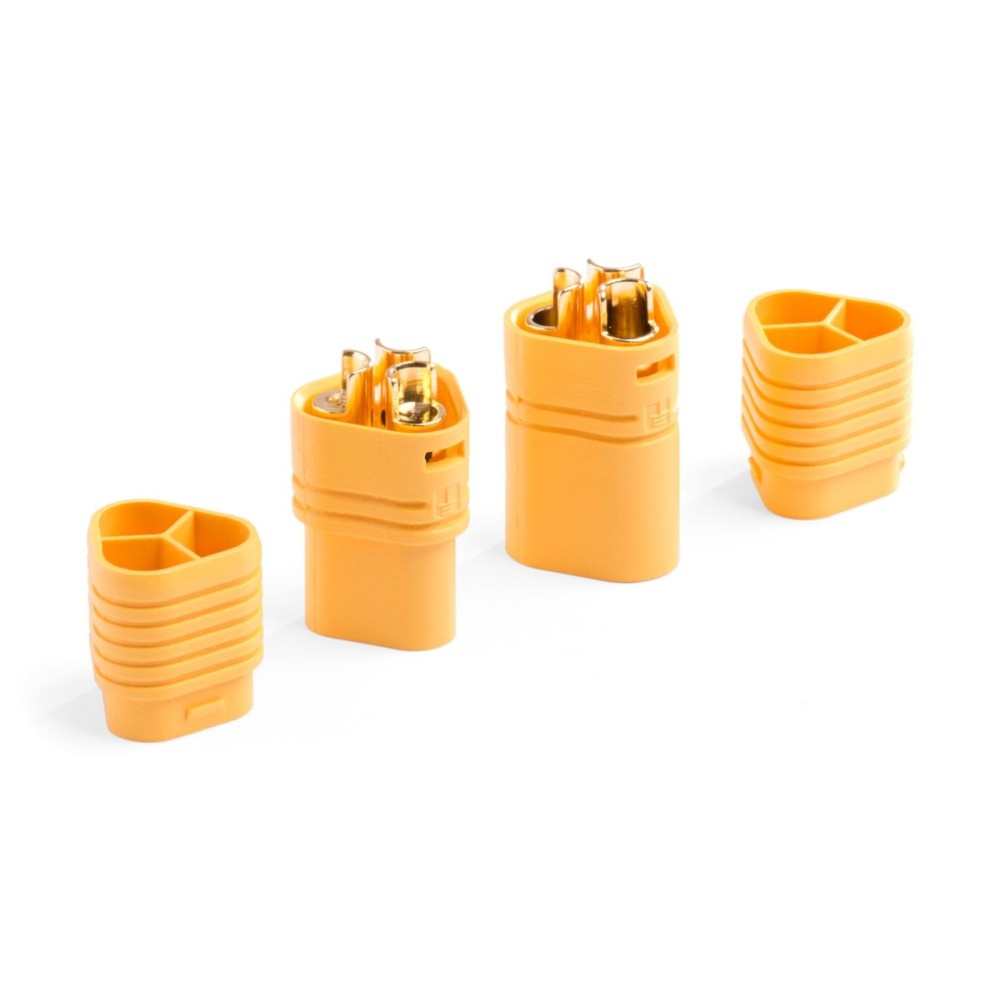 Tříkolíkový silový konektor se zlacenými kontakty se zatížitelností max. 60 A. Pro kabely o průřezu max. 3,3 mm2 (12AWG). Přechodový odpor 0,55 mOhm, max. 500 V. Ideální pro propojování střídavých elektromotorů a regulátorů. Balení 1 pár.