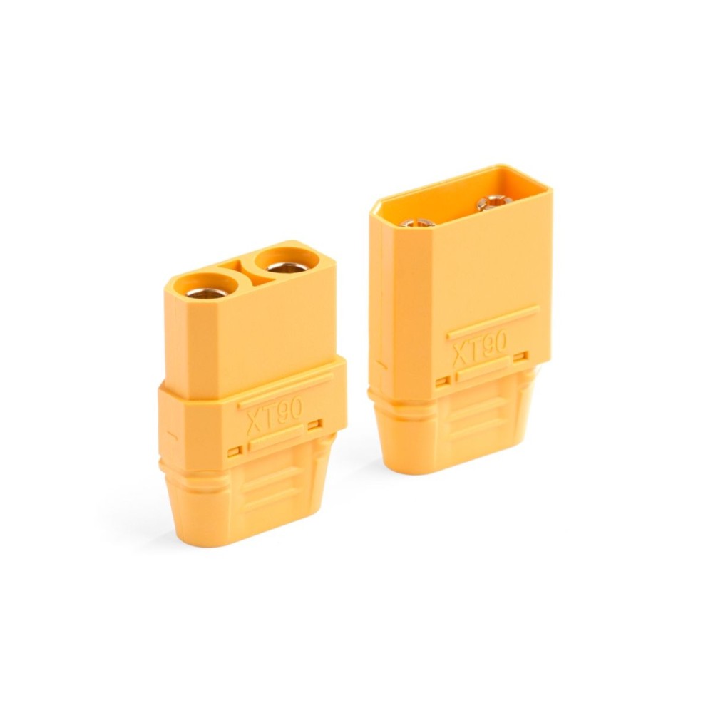 Dvoukolíkový silový konektor se zlacenými kontakty se zatížitelností max. 90 A. Pro kabely o průřezu max. 5,3 mm2 (10AWG). Přechodový odpor 0,30 mOhm, max. 500 V. Balení 1 pár.