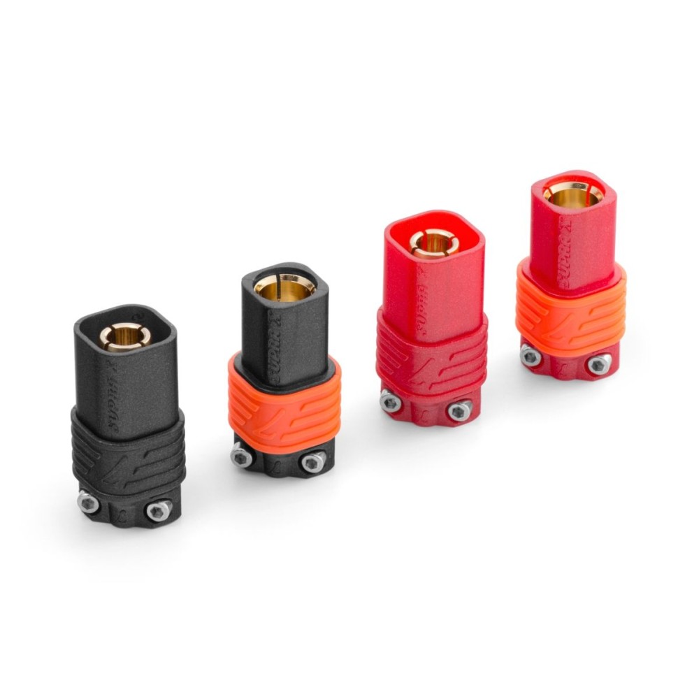 Zlacené 7mm konektory s domkem pro 5-8,4 mm2 (8-10AWG) kabel. Konstantní proud 240A, špičkový...
