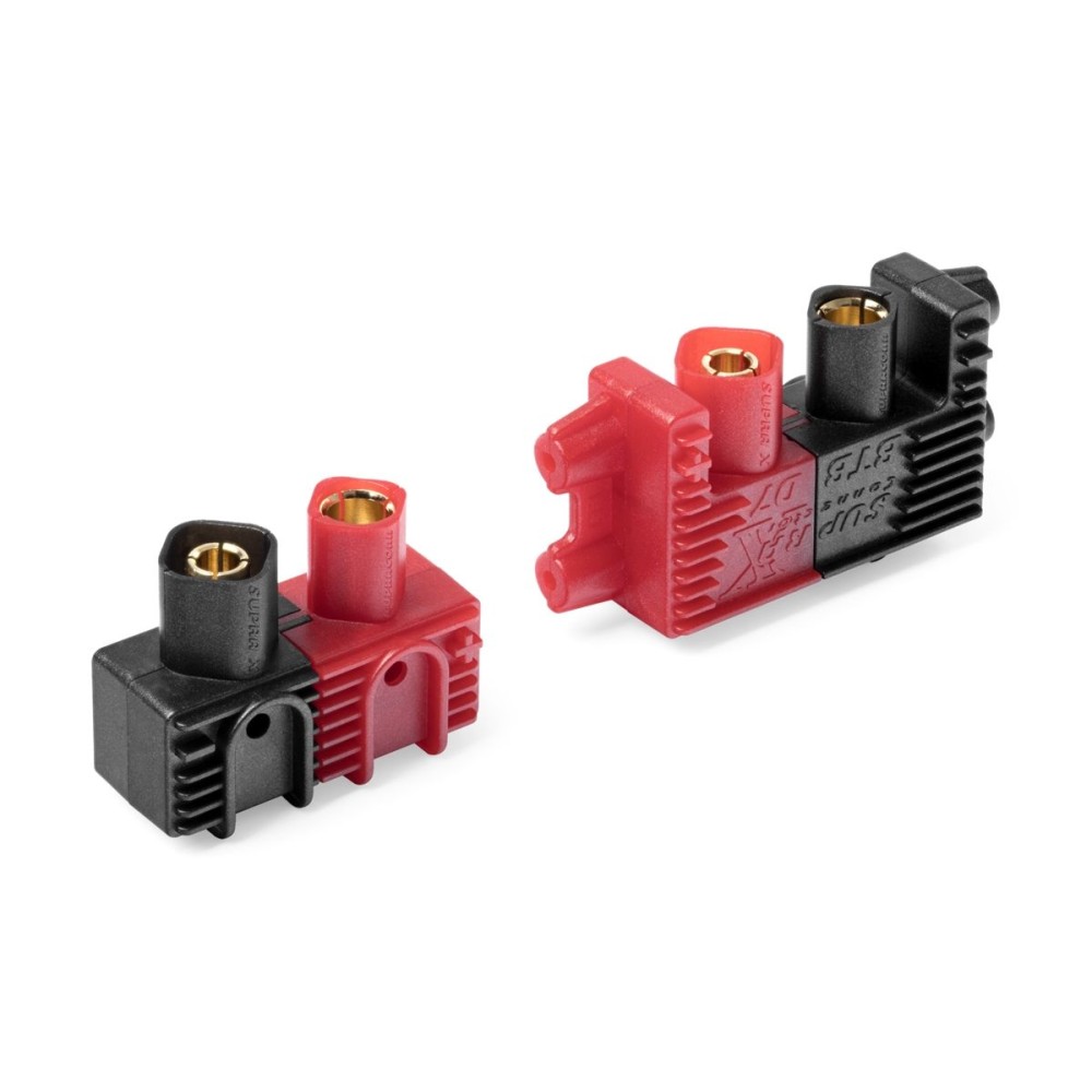 Dvoukolíkový silový konektor se 4,5mm zlacenými kontakty se zatížitelností max. 90A a 500V. Pro...