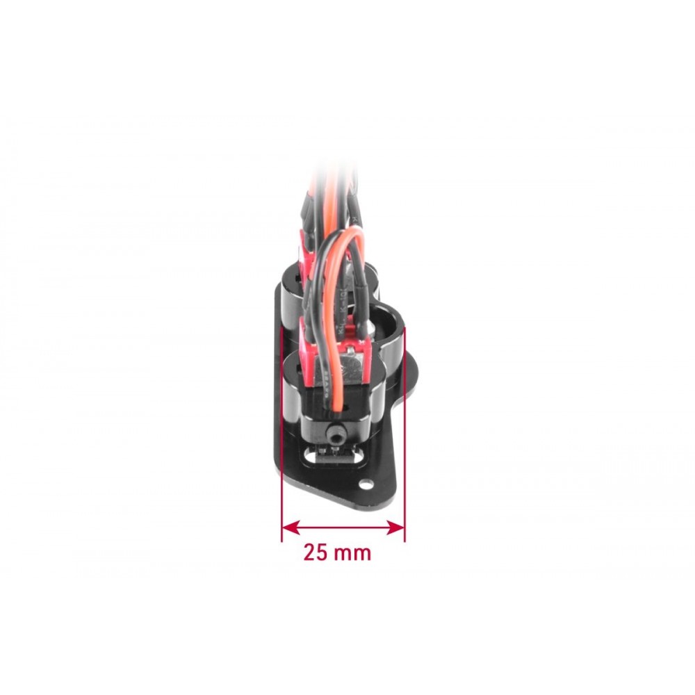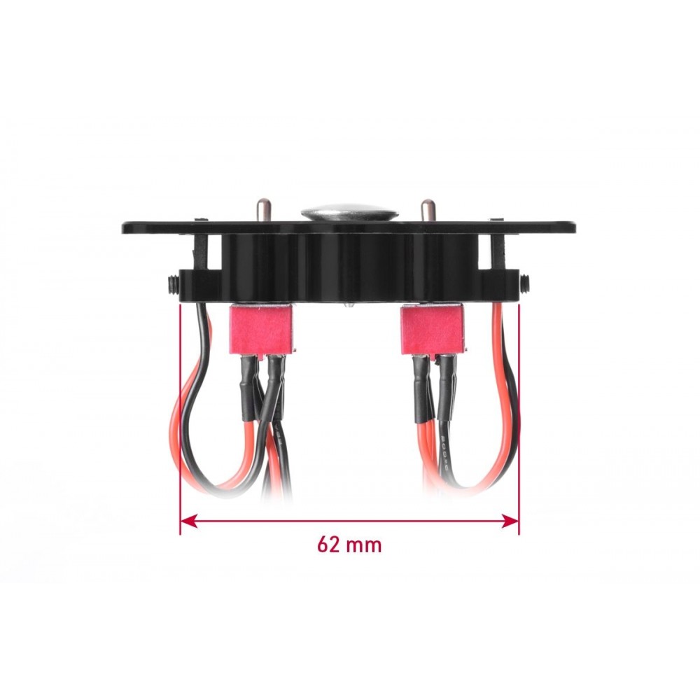 Konektory kompatibilní s JR a Futabou. Váha 58g vč. kabelů. Délka kabelů je 22cm. Ostatní rozměry a potřebné údaje pro instalaci jsme zahrnuli do fotografie.