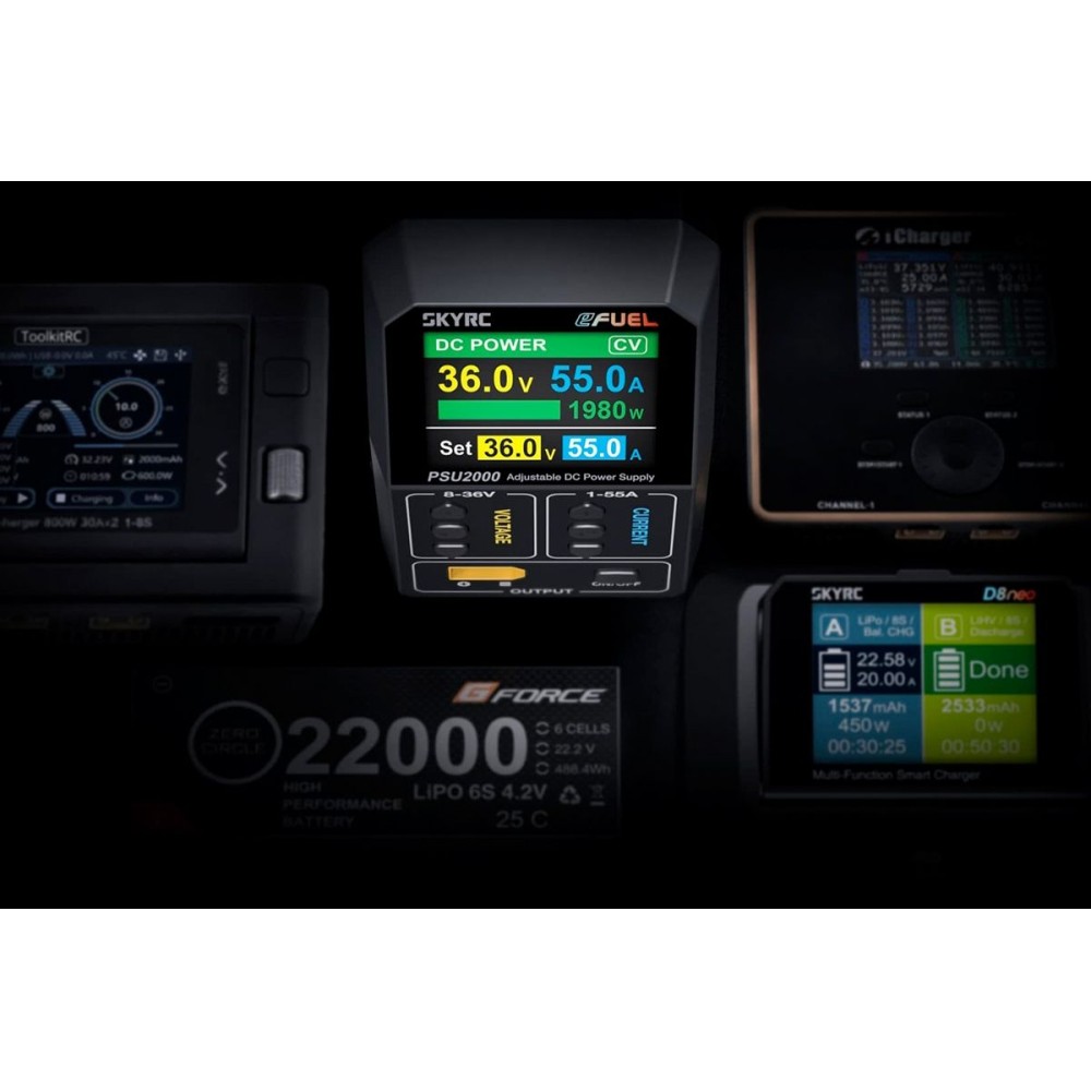 Vysokovýkonný – a přitom lehký, kompaktní, v odolném hliníkovém pouzdře – stabilizovaný síťový zdroj PSU2000 je ideální pro napájení modelářských nabíječů a dalších zařízení. Nabízí nastavitelné výstupní napětí 8-36 V a proud 1-55 A s výkonem až 2000 W.