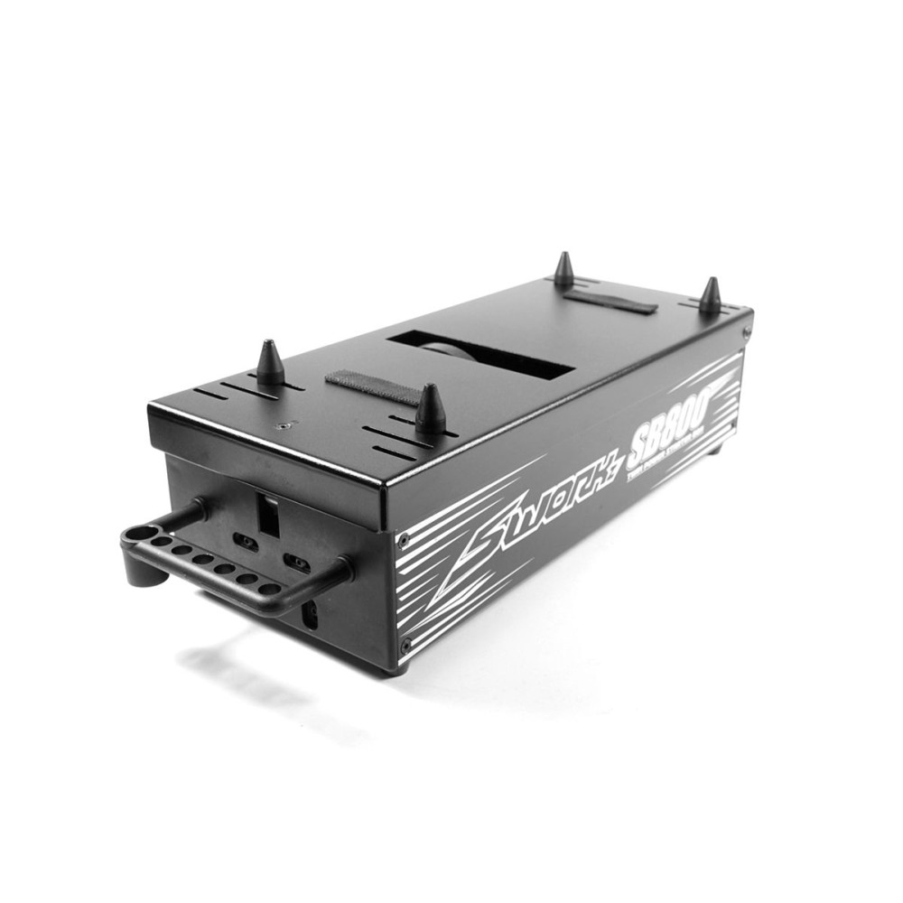 Díky čtyřem dodávaným plastovým držákům lze na SB800 optimálně umístit nejrůznější tvary podvozků. Díky tomu lze startovací box SWORKz SB800 použít pro mnoho 1/8 Off-Road podvozků.