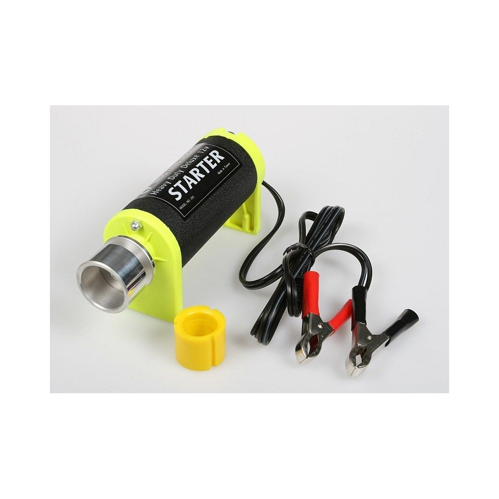 Starter 12 V pro letecké spalovací motory do 15 ccm. Nástavec s třecí spojkou pro kužely od 38 mm.