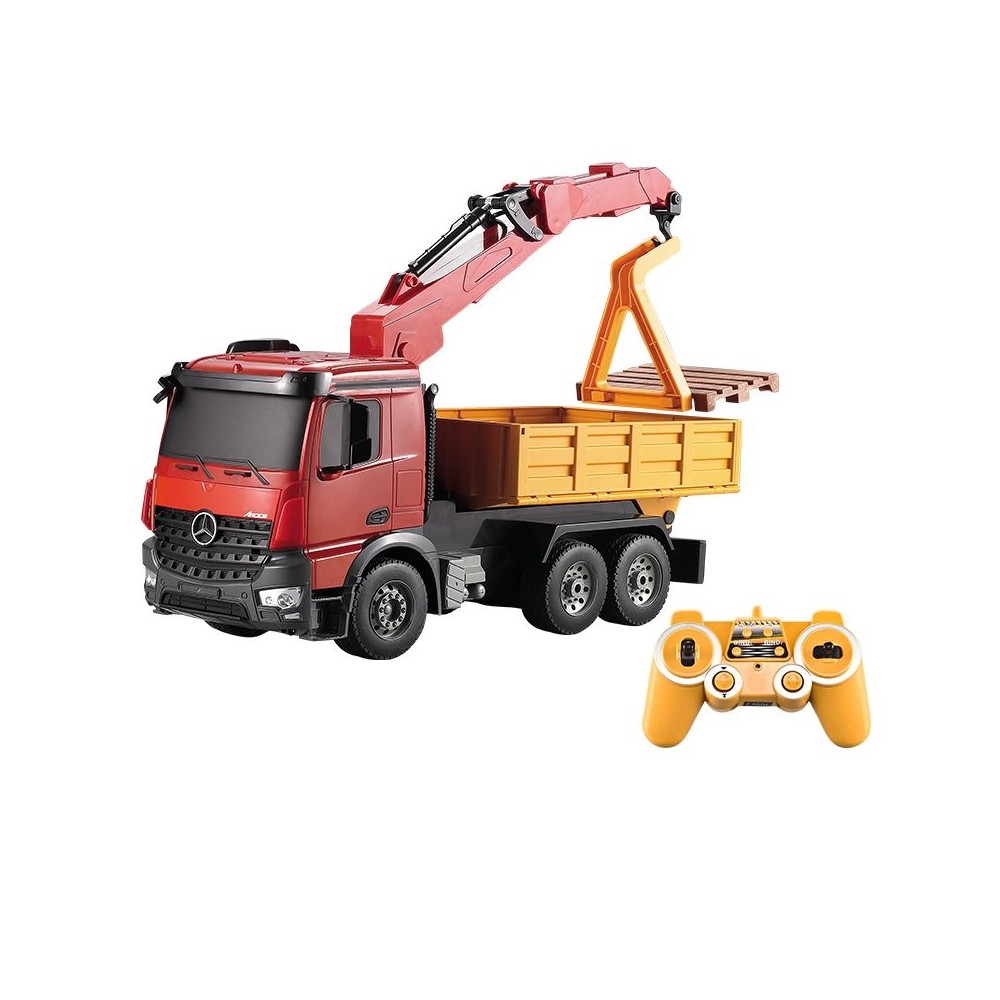 6-ti kanálový model nákladního automobilu Mercedes-Benz Arocs s rukou v měřítku 1:20. Máte možnost jízdy dopředu a dozadu, zatáčení doleva a doprava, pohyb ramene nahoru a dolů a jeho rotaci o 180°, pohyb korby nahoru a dolů. Součástí balení je originální akumulátor a nabíječ.