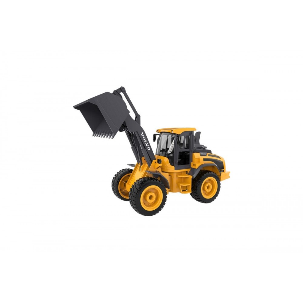 Model kolového nakladače na dálkové ovládání, v měřítku 1:16. Disponuje simulovanými světly a zvuky. Dosah ovladače je 25 m, dobíjecí baterie a kabel jsou součástí balení.