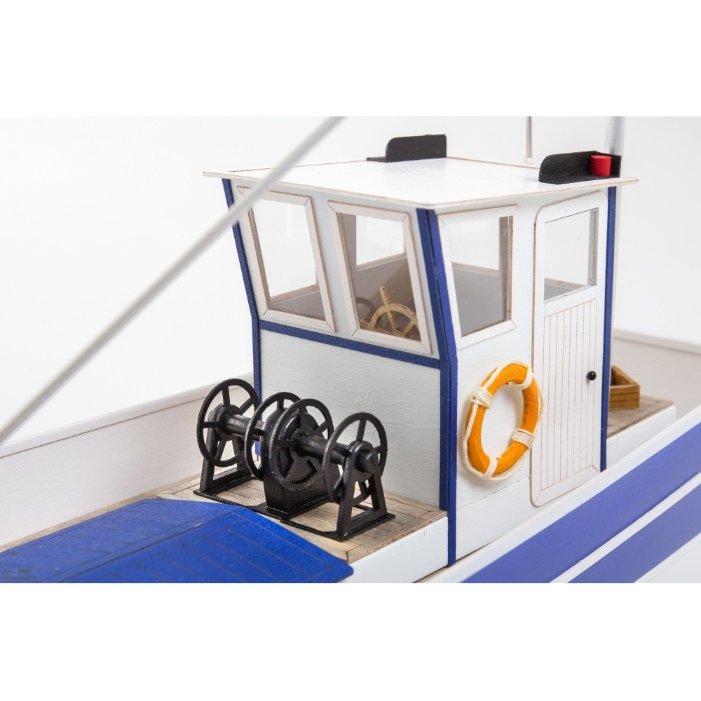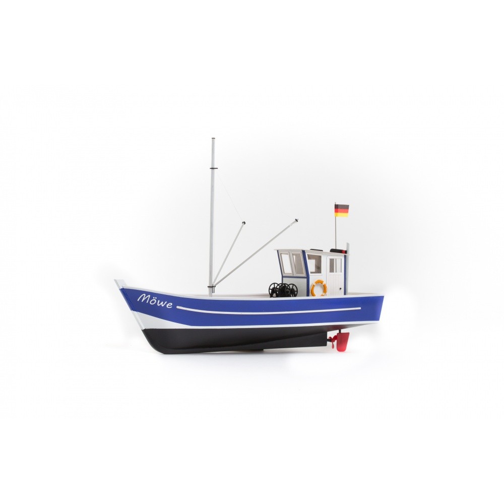 Möwe 2 je umělecké dílo. Hliníkový stěžeň a ráhna dodávají modelu elegantní vzhled. Síťový naviják, dřevěné bedny na ulovené ryby a další autentické detaily přidávají na věrnosti. Když se na hotovou loď podíváte, ucítíte slaný vzduch moře!