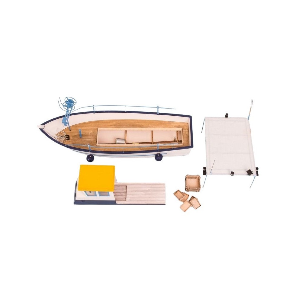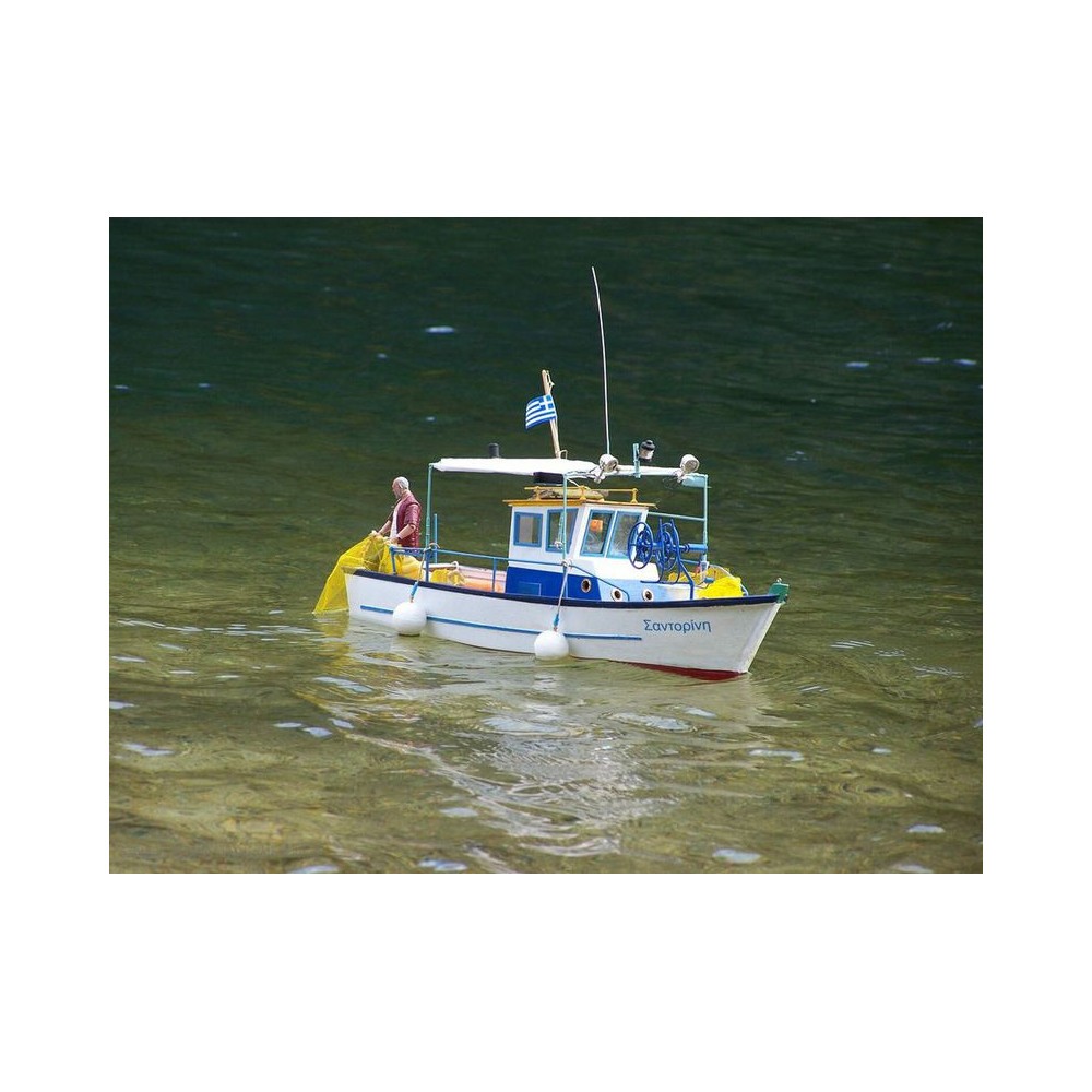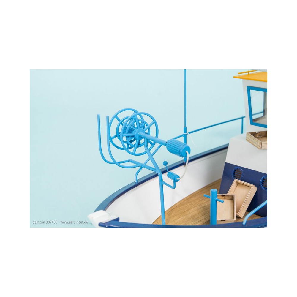 Santorini není jen „další loď“. Je to věrná kopie skutečné řecké rybářské lodě – včetně síťového navijáku, dřevěných beden na ryby, detailního slunečníku z leptaných dílů a dokonce i digitálního displeje pro echolot nebo navigaci. Každý detail je promyšlený, každý prvek má své místo. Díky rozsáhlým leptaným dílům získává model neuvěřitelně realistický vzhled, který vynikne na vodní hladině i ve vitríně.