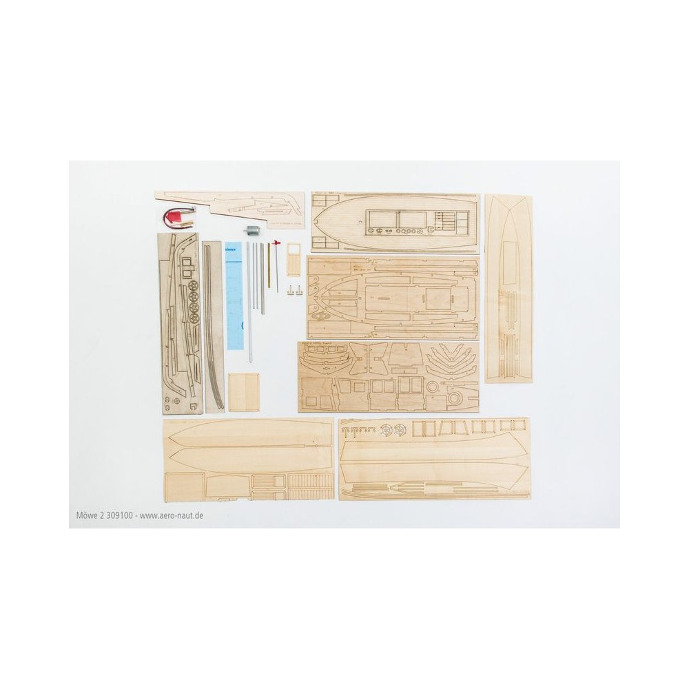 Všechny dřevěné díly jsou z kvalitní překližky a A-TEXu. Lodní hřídel s lodním šroubem, kormidlo, palubní vybavení i drobné součástky – vše je navrženo tak, aby model nejen skvěle vypadal, ale také dlouho vydržel.