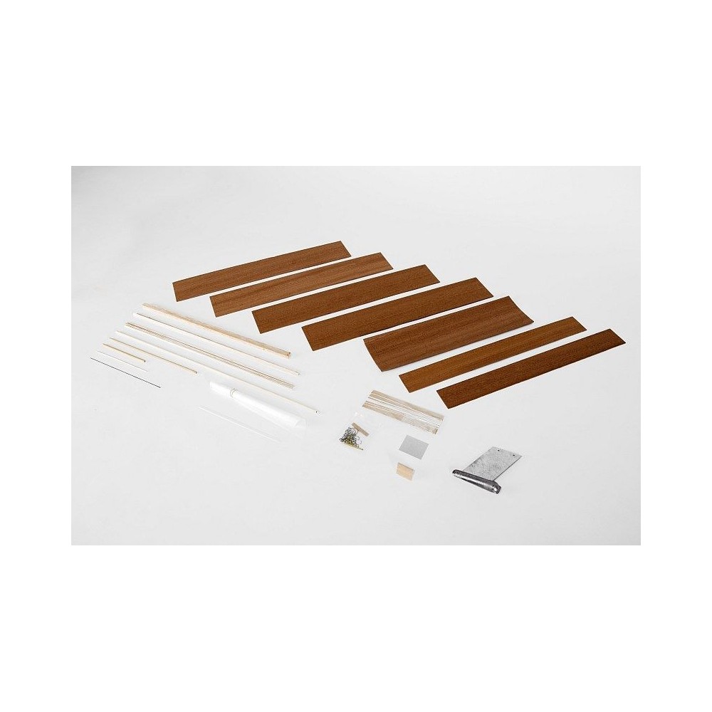 Stavebnice volně plovoucí plachetnice o délce 432mm pro začátečníky, lze doplnit RC ovládání. V rozsypu, předseknuté překližkové, mahagonové, balsové a bukové díly, dacronová plachta a drobné příslušenství. Ideální jako první "dřevěná" loď.