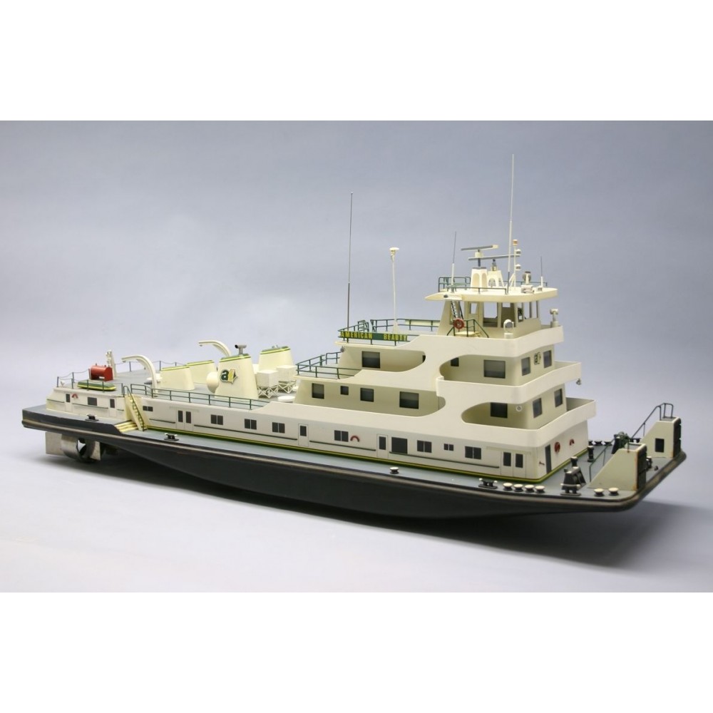 Říční tlačný remorkér American Beauty byl postaven v roce 1968 loděnicí St. Louis Ship Co. a od té doby brázdí vody Mississippi. „Americká kráska“ je 170 stop (51,8 m) dlouhá a její trup má šířku 45 stop (13,7 m). Pohání ji dvojice dieselových motorů o 2500 koňských silách, dvojice lodních šroubů je umístěna v pevných Kortových tryskách. Řízení zajišťuje vždy pár kormidel umístěných před Kortovými tryskami a jednoduchá kormidla za nimi. American Beauty typicky tlačí rychlostí 4-9 uzlů soulodí 20-25 nákladních člunů - každý má délku 200 stop (cca 61 m) a šířku 35 stop (10,6 m).