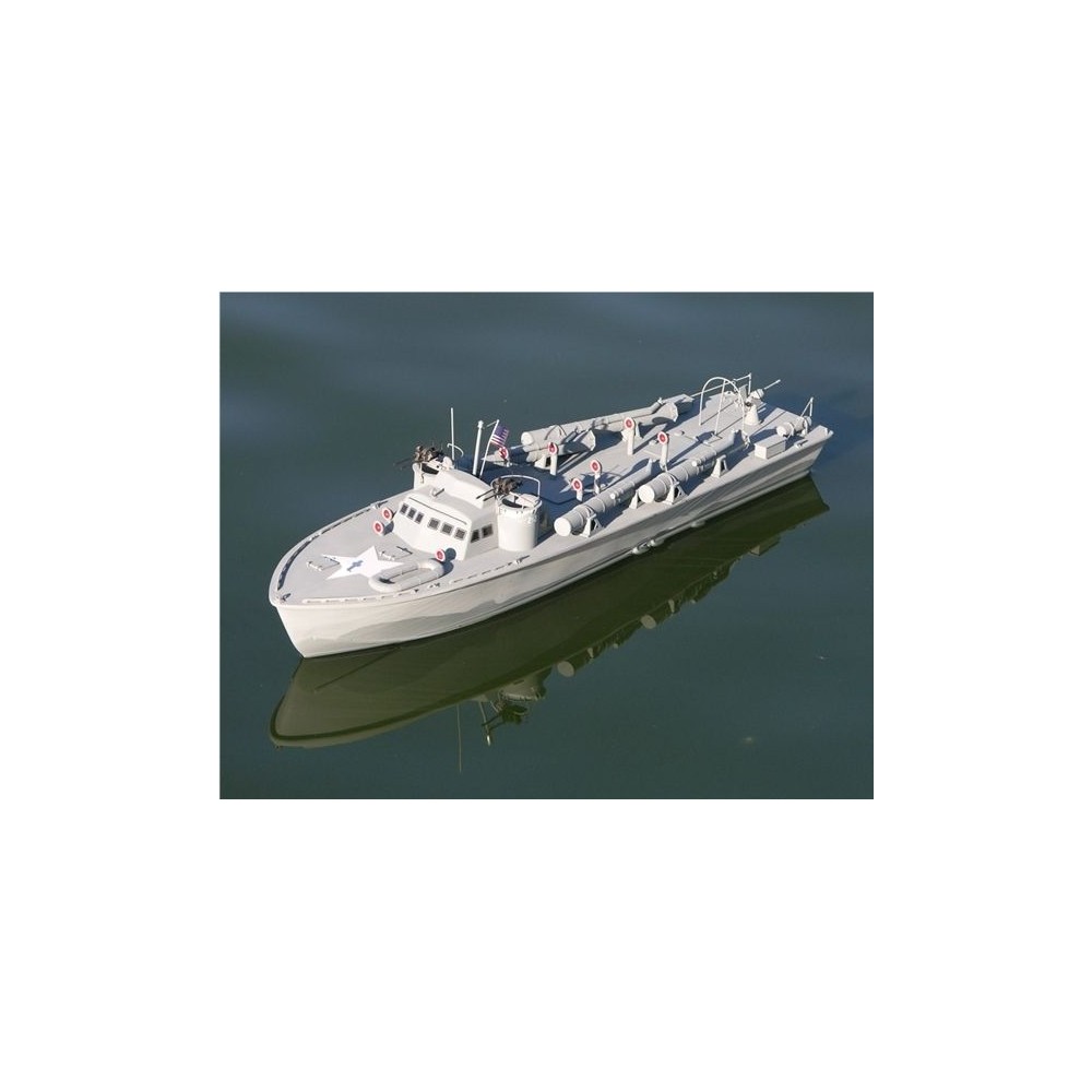 Stavebnice torpédového člunu 775mm v rozsypu pro zkušené stavitele. Klasická konstrukce s předseknutými překližkovými žebry a obšívkou. Množství maketových doplňků z kovu a plastů; pro motor řady 500.