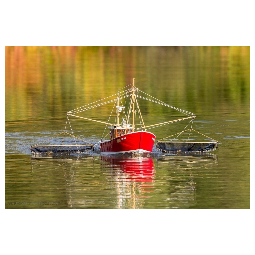 Tento model má důmyslně navržený trup, díky němuž vypadá Jule i na rozbouřeném moři věrohodně. Tento rybářský kutr byl vytvořen podle originálu, který je možné vidět v Severním a Baltském moři. Jule zaujme velmi vysokou úrovní detailů. Přiložená sada leptaných dílů obsahuje nejen několik kování, ale také kompletní záchytnou a opracovací plochu pro palubu. Kromě vařiče na čerstvě ulovený oběd jsou zde také četné lampy a lucerny, které vybízejí k volitelnému rozšíření o LED. Jako třešnička na dortu je hlavní světlomet plně ovladatelný a pomocí navijáku je otočný o 360°. Takže Úspěšnému odlovu za svítání nestojí nic v cestě.