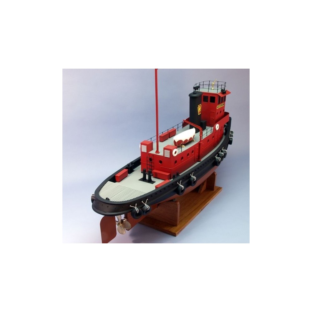 Stavebnice říčního remorkéru v měřítku 1:32 v rozsypu pro pohon elektromotorem řady 500-600 pro pokročilé stavitele. Díky vysokému předpracování většiny dílů není stavba nijak zvlášť náročná na zručnost a dílenské vybavení - ale samozřejmě pečlivá a trpělivá práce je v lodním stavitelství nezbytná pro dosažení dobrého výsledku. Pro lepení budete potřebovat střední vteřinové lepidlo, epoxyd a lepidlo pro lepení plastikových modelů. Vlastní stavba probíhá dle dvoupohledového výkresu ve zmenšené velikosti zachycujícího vnější vzhled lodi. Jednotlivé stavební kroky se provádějí dle perspektivních výkresů zobrazujících detailně konstrukci dané části lodi, vybrané klíčové kroky a zhotovování doplňků jako jsou třeba zábradlí nebo žebříky usnadňují předtištěné šablony v měřítku 1:1. Pro konečný barevný finiš budou na malé plochy vyhovovat např. akrylové barvy na plastikové kity, větší plochy trupu potom můžete nastříkat vhodným sprejem na karoserie.