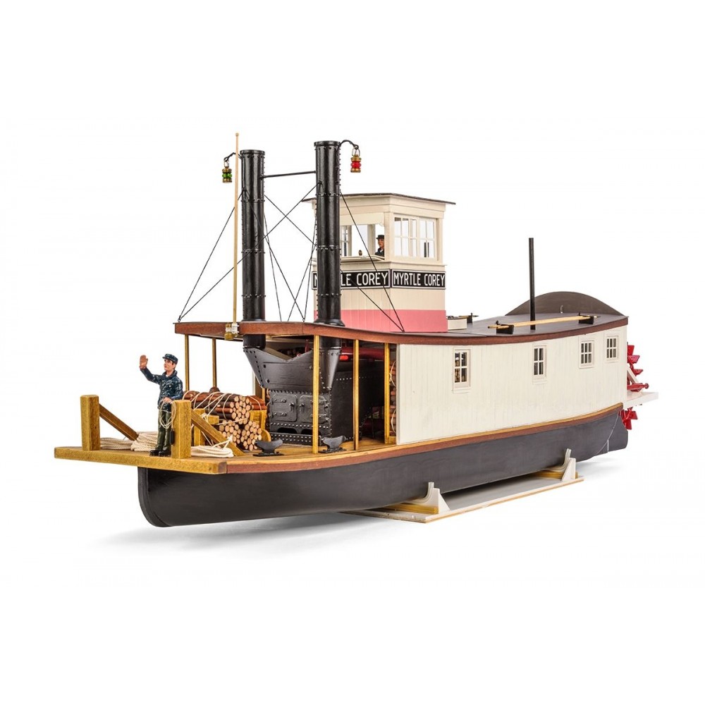 Poznámka od stavitele remorkérové verze: Vzhledem k malému ponoru a v poměru k tomu obrovité nástavbě je Myrtle Corey hodně citlivá na vítr z boku i zepředu. Také paluba se nachází proklatě nízko nad vodní hladinou, takže se s lodí dá bezpečně jezdit jen na klidné hladině, za slabého vánku nebo bezvětří. Díky trojitému kormidlu je Myrtle Corey překvapivě dobře ovladatelná, bez problémů se s ní dá projet trať dle pravidel NAVIGA pro makety (jen s časovým limitem mohou být potíže, když to fouká). Ale zase máte rozvážně a majestátně bafající loď, kterou na vodě kolegové lodičkáři nepřehlédnou a “suchozemské krysy” obdivují. Myrtle Corey je ideální také pro noční jízdy, kdy poziční lucerny vysoko na komínech dávají výborný přehled o poloze lodi a divákům nabízejí nádhernou podívanou.