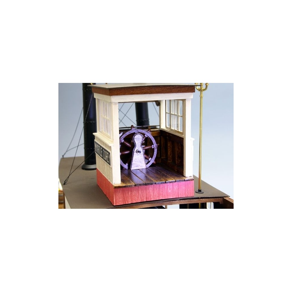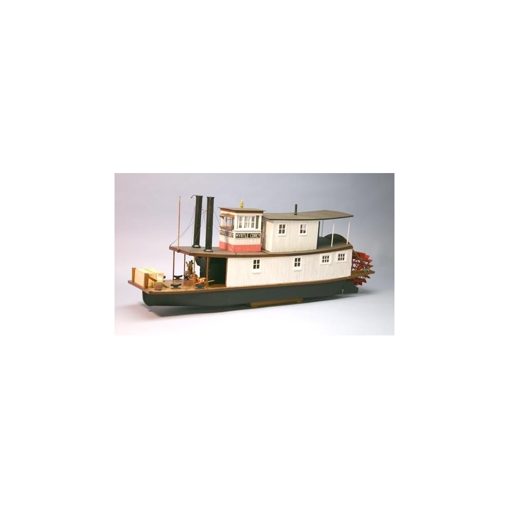 Stavebnice říční zadněkolesové lodi v rozsypu v měřítku 1:20 pro pohon elektromotorem s převodem do pomala nebo parním strojem pro pokročilé stavitele. Díky vysokému předpracování většiny dílů není stavba nijak zvlášť náročná na zručnost a dílenské vybavení, ale model vzhledem k velikosti a propracovanosti vyžaduje notnou dávku pečlivosti, trpělivosti a vytrvalosti - jak je v lodním stavitelství nezbytné pro dosažení dobrého výsledku. Pro lepení budete potřebovat střední a husté vteřinové lepidlo, "acetonové" modelářské lepidlo, epoxid a lepidlo pro lepení plastikových modelů. Vlastní stavba probíhá dle výkresů ve zmenšeném měřítku, perspektivních výkresů zobrazujících detailně konstrukci dané části lodi.