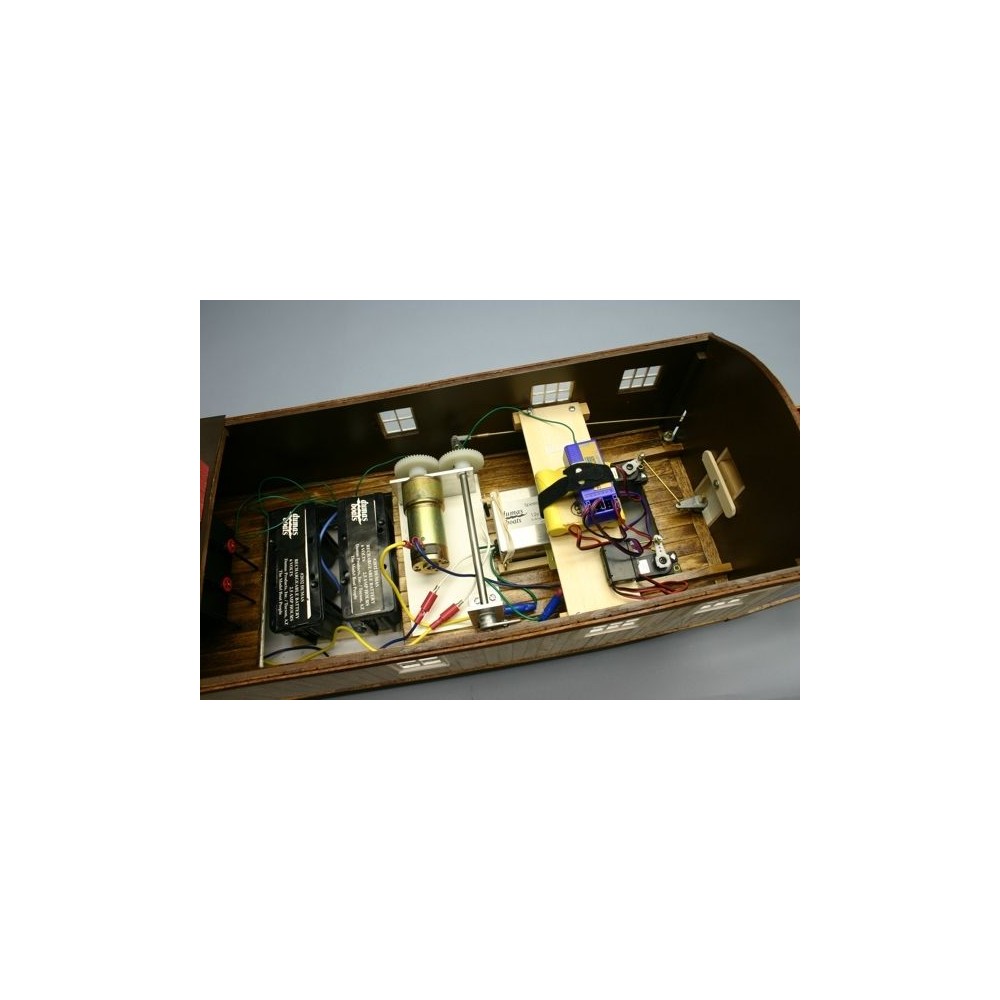 Pro pohon lodi slouží stejnosměrný pomaluběžný elektromotor (není součástí stavebnice) přes dvojici ozubených kol uvádějící do pohybu hnací táhla kolesa. Pro napájení je vhodné použít dva 6 V olověné akumulátory zapojené v sérii pro snadnější vyvážení lodi. Dumas dodává speciální 12 V motor s převodovkou 60,5:1 #2029, který ideálně doplňuje táhla a převody obsažené ve stavebnici.