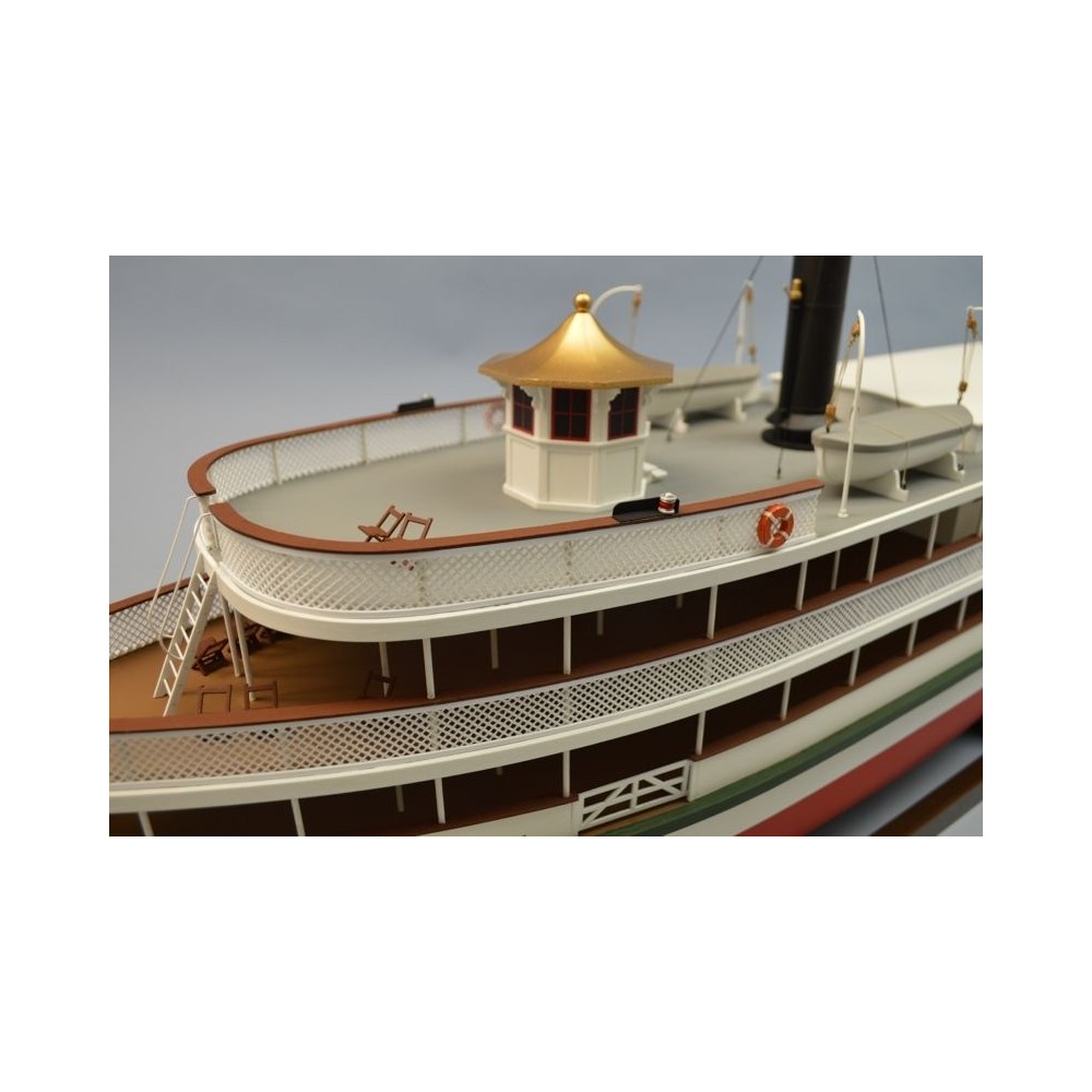 Stavebnice říční osobní lodi v rozsypu v měřítku 1:48 pro pohon elektromotorem řady 500 pro pokročilé stavitele. Díky vysokému předpracování většiny dílů není stavba nijak zvlášť náročná na zručnost a dílenské vybavení, ale model vzhledem k velikosti a propracovanosti vyžaduje velkou dávku pečlivosti, trpělivosti a vytrvalosti - jak je v lodním stavitelství nezbytné pro dosažení dobrého výsledku. Pro lepení budete potřebovat střední a husté vteřinové lepidlo, "acetonové" modelářské lepidlo, epoxid a lepidlo pro lepení plastikových modelů. Vlastní stavba probíhá dle výkresu v měřítku 1:1 a perspektivních výkresů zobrazujících detailně konstrukci dané části lodi. Zhotovování maketových detailů usnadňují předtištěné šablony v měřítku 1:1.