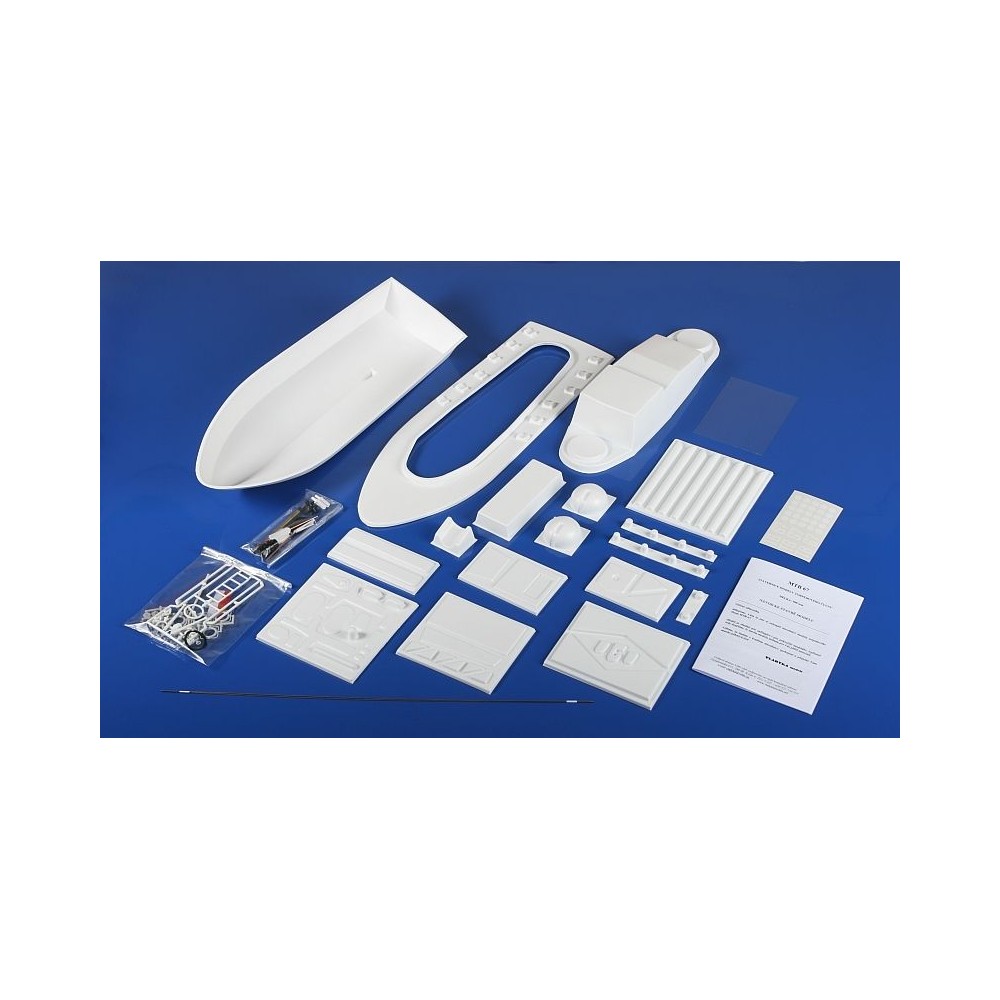 Stavebnice obsahuje vakuově vytvarované díly trupu, paluby, kabiny, podstavce, díly pro uložení jednotlivých částí RC soupravy, díly pohonné jednotky (kormidelní ploutev, kormidelní páka, třílistá lodní vrtule, hřídel, pružná spojka) a další díly pro dokončení modelu (torpédomety, dělové věže, záchranné kruhy, zábradlí, kotva, kotevní vrátek, světlomet, svítilny, radar, klakson, žebřík, stěžeň, stožár s vlajkou, křížové vazníky, průvlaky a barevná samolepka s okénky a názvem lodi).
