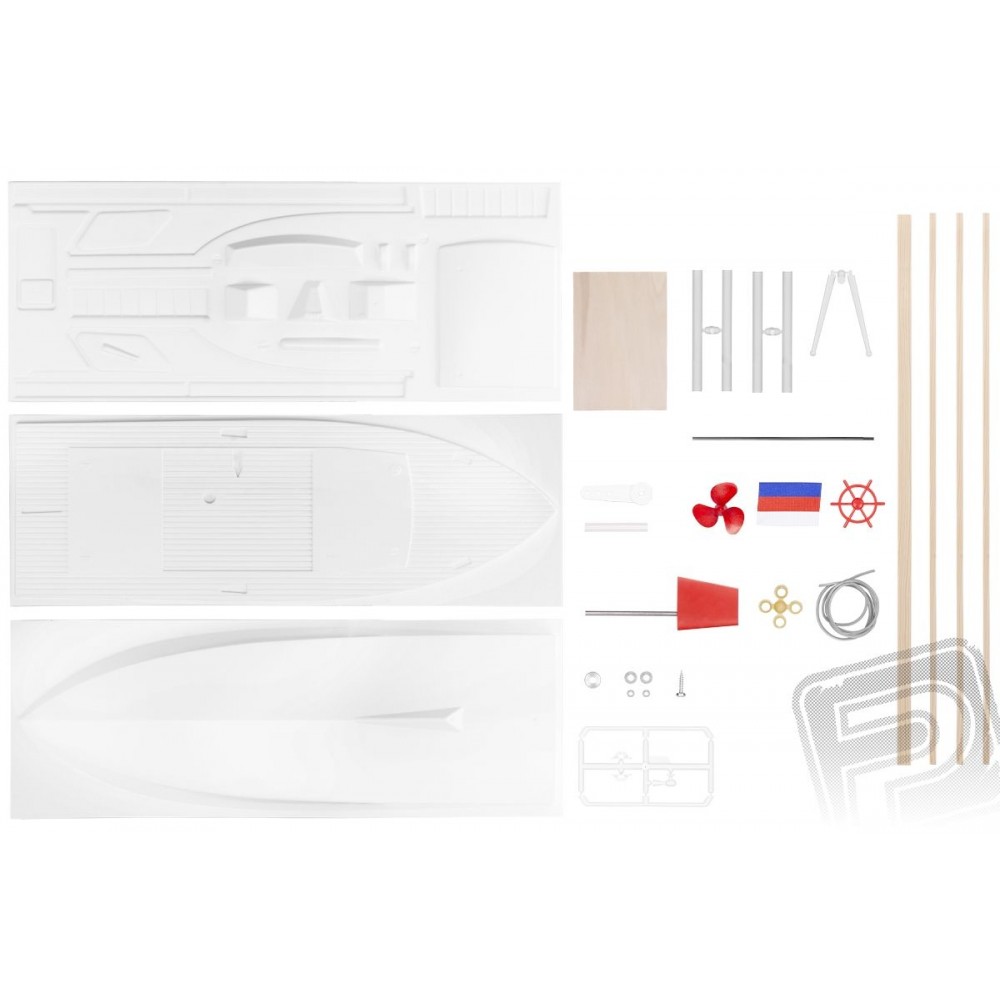 Stavebnice motorové jachty pro elektromotory řady 500. Model v rozsypu s trupem a nástavbami z...