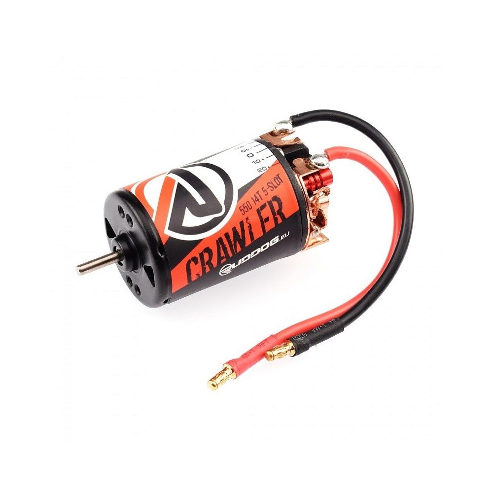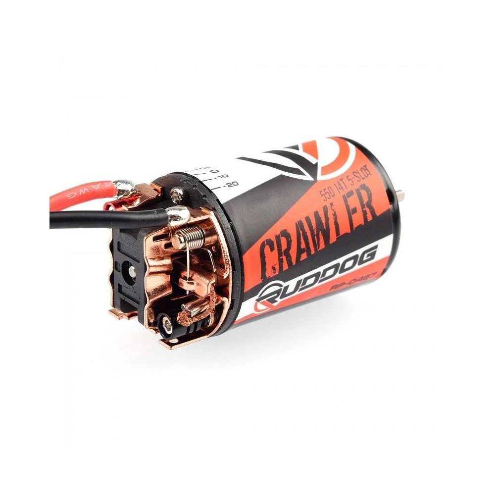 Stejnosměrné motory RUDDOG ve velikosti 550 jsou určeny pro všechny fanoušky CRAWLER modelů. Přicházejí v populárních 5-slotových verzích. Motory s dvojitými kuličkovými ložisky mají speciálně potažené hlavy motoru, vyměnitelné uhlíky a pružiny motoru, chladicí lopatky pro kartáče motoru a mohou být v případě potřeby během své životnosti kompletně opraveny. Nastavitelné časování také umožňuje použití proti určenému směru otáčení motoru, což může být výhodné pro použití ve vozidlech se zvláštním uspořádáním převodů. Motory přicházejí jako 5-drážková varianta pro obzvláště měkké použití.