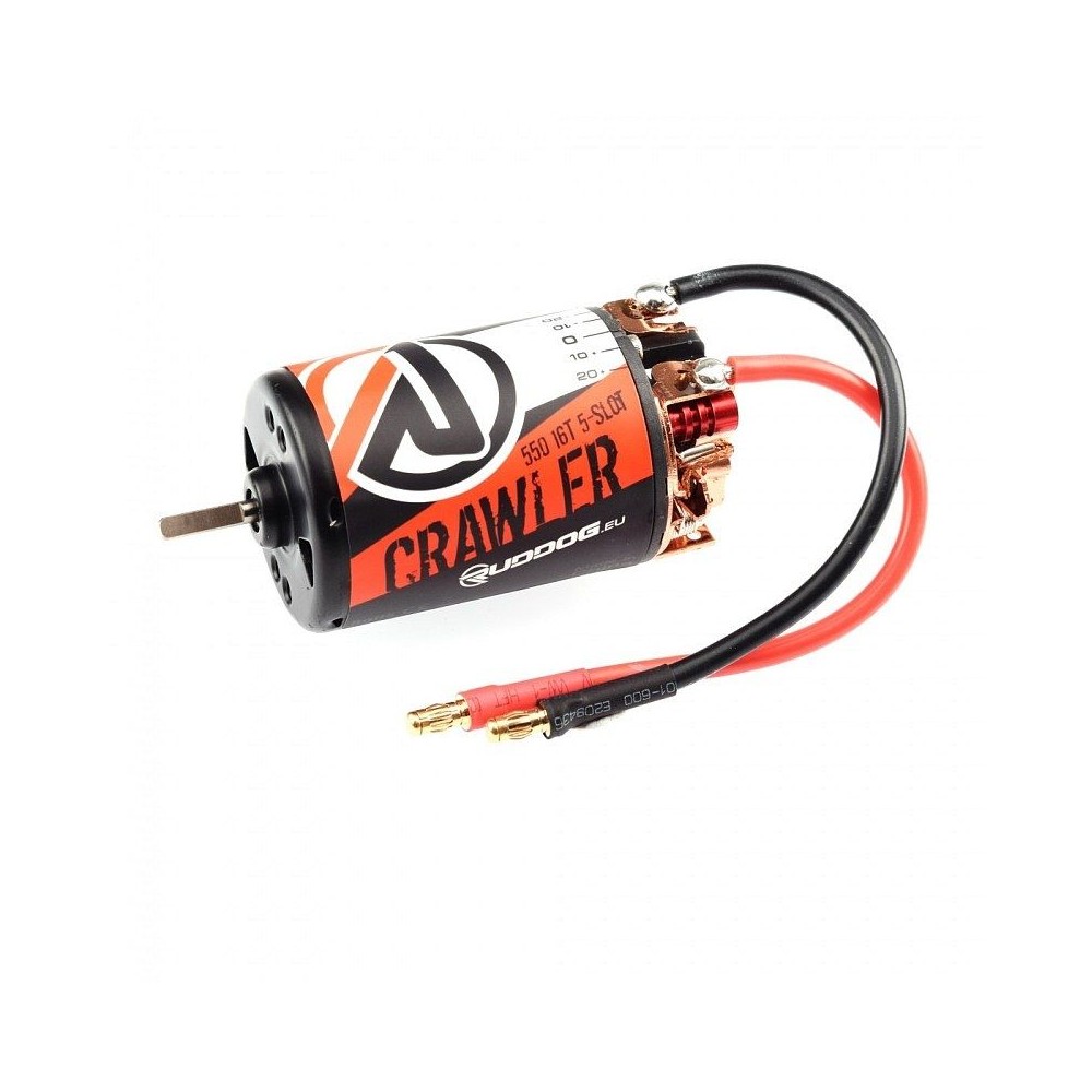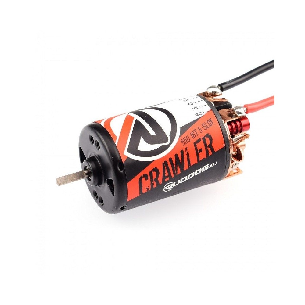 Stejnosměrné motory RUDDOG ve velikosti 550 jsou určeny pro všechny fanoušky CRAWLER modelů. Přicházejí v populárních 5-slotových verzích. Motory s dvojitými kuličkovými ložisky mají speciálně potažené hlavy motoru, vyměnitelné uhlíky a pružiny motoru, chladicí lopatky pro kartáče motoru a mohou být v případě potřeby během své životnosti kompletně opraveny. Nastavitelné časování také umožňuje použití proti určenému směru otáčení motoru, což může být výhodné pro použití ve vozidlech se zvláštním uspořádáním převodů. Motory přicházejí jako 5-drážková varianta pro obzvláště měkké použití.