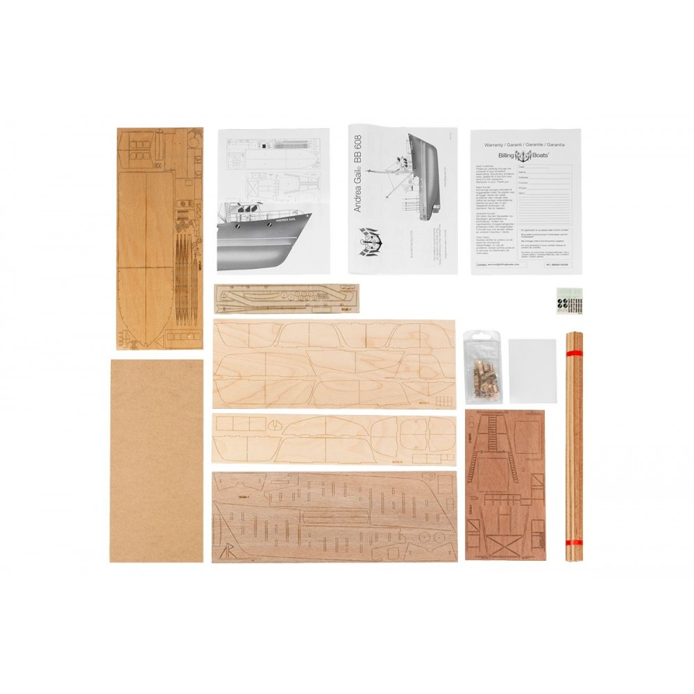 Andrea Gail má trup klasické dřevěné konstrukce z laserem vyřezávaných dílů s plaňkovanou obšívkou doplněnou balsovými bloky, dřevěnou palubu a nástavbu. Stavebnice obsahuje všechny dřevěné a plastové díly potřebné pro dokončení modelu, maketové příslušenství (např. poziční světla, kotvu, lodní šroub atd.).