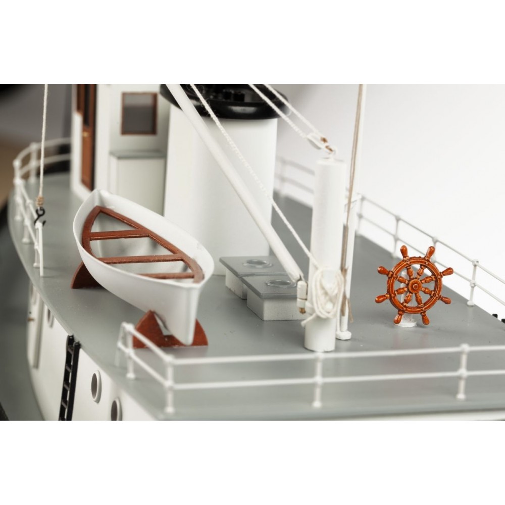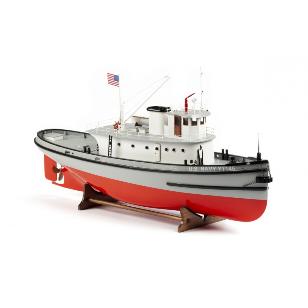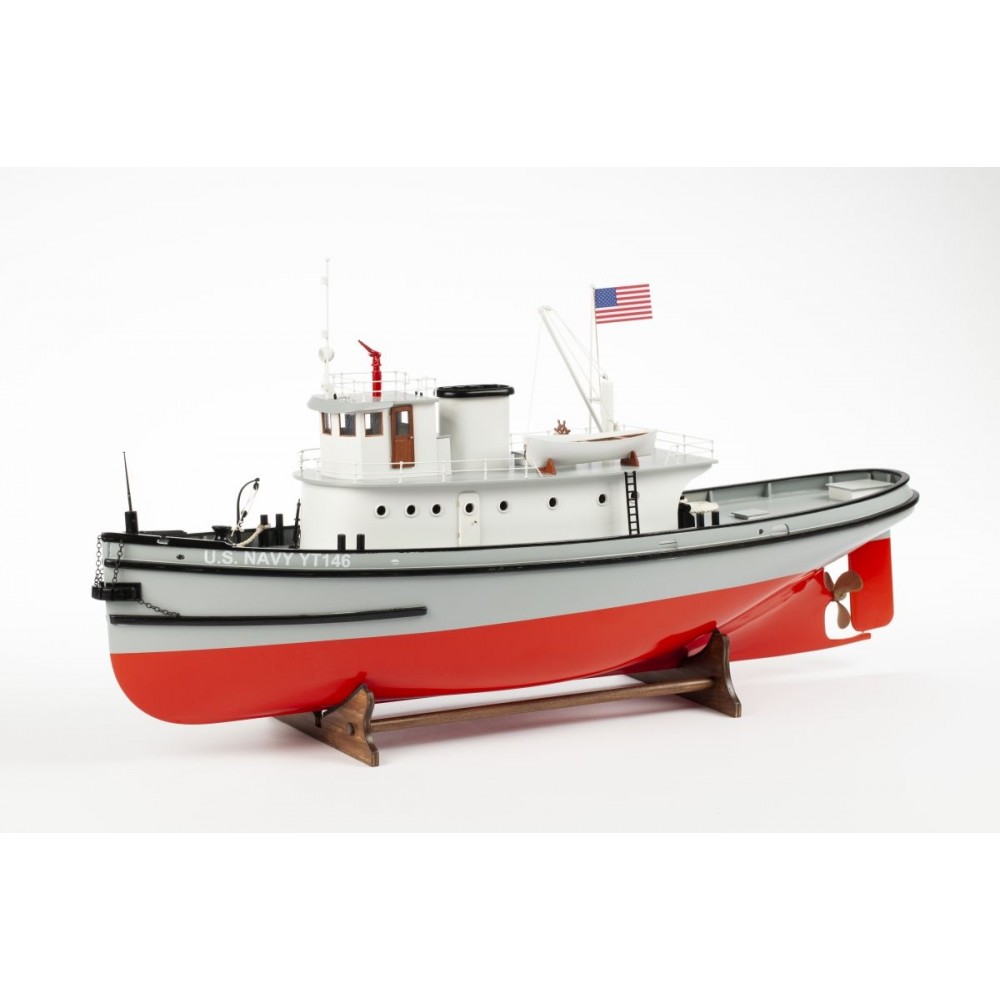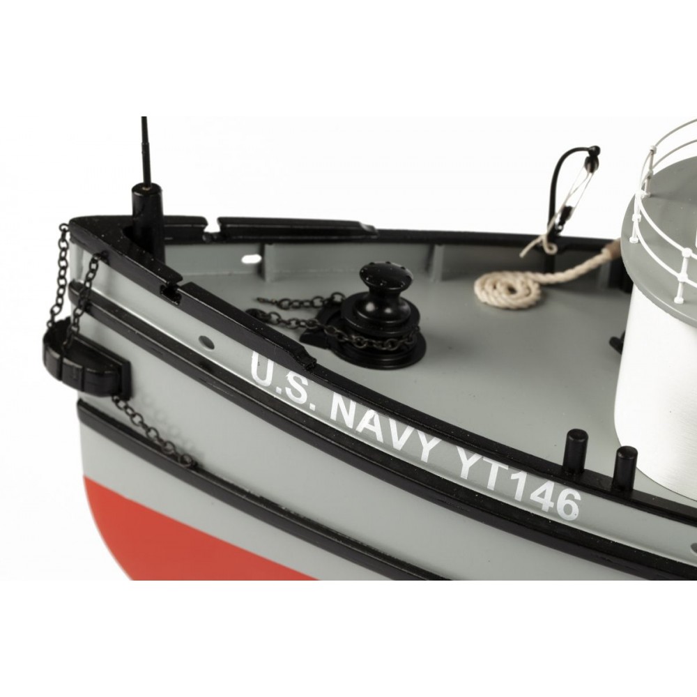 Detailně propracovaná neplovoucí maketa amerického přístavního remorkéru US Navy z roku 1941 s dřevěným plaňkovaným trupem o délce 620 mm dánské firmy Billing Boats. Stavebnice v rozsypu v měřítku 1:50 pro začínající až mírně pokročilé stavitele.