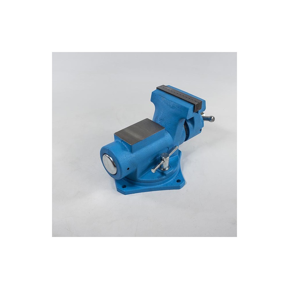 Dílenský svěrák s otočnou hlavou a čelistmi pro kulaté materiály.