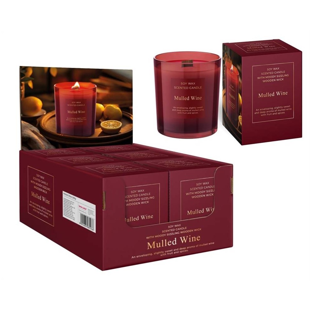 Provedení: se sójovým voskem a dřevěným knotem. Vůně: Obklopující, lehce sladká a hluboká vůně svařeného vína.