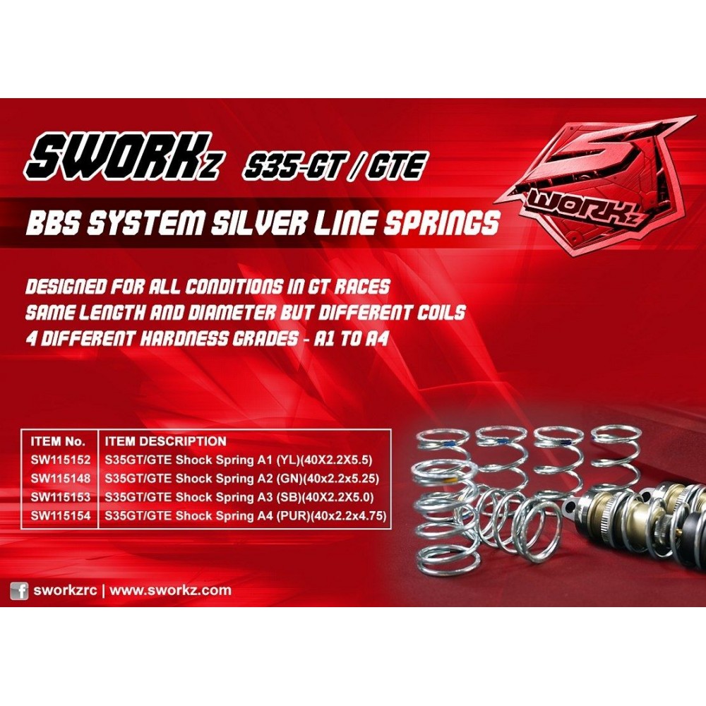 SWORKz GT COMPETITION pružiny olejových tlumíčů, A1 (40x2.2x5.5), žluté, 2 ks.