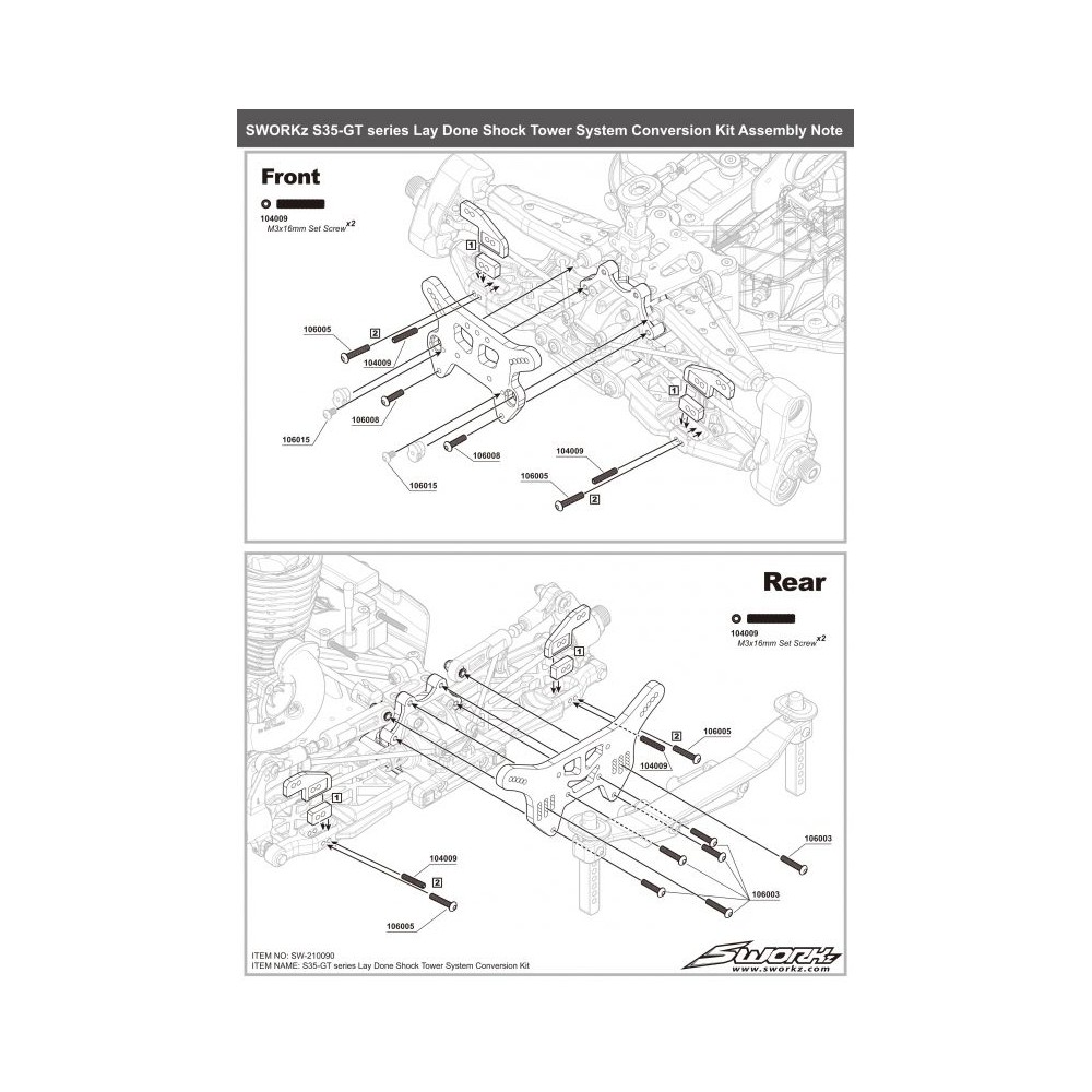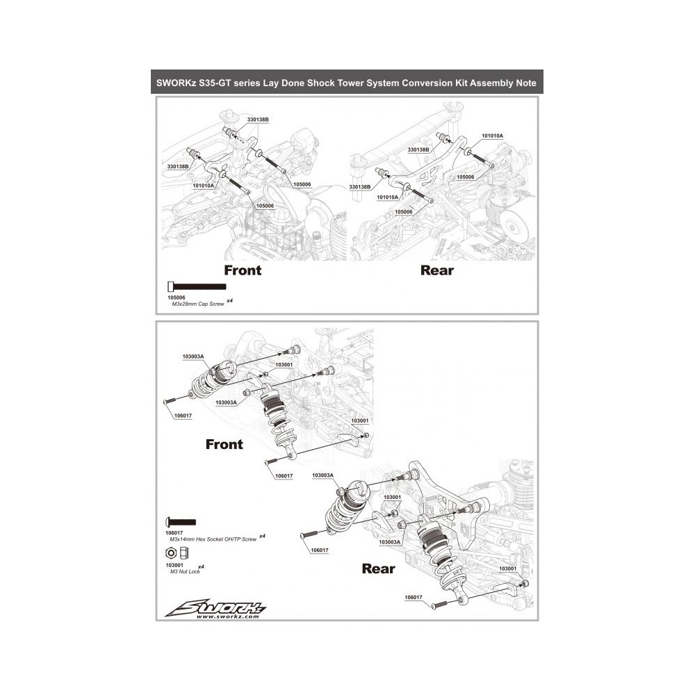 SWORKz GT uhlíkové přední a zadní parohy/držáky tlumičů, 1 sada
