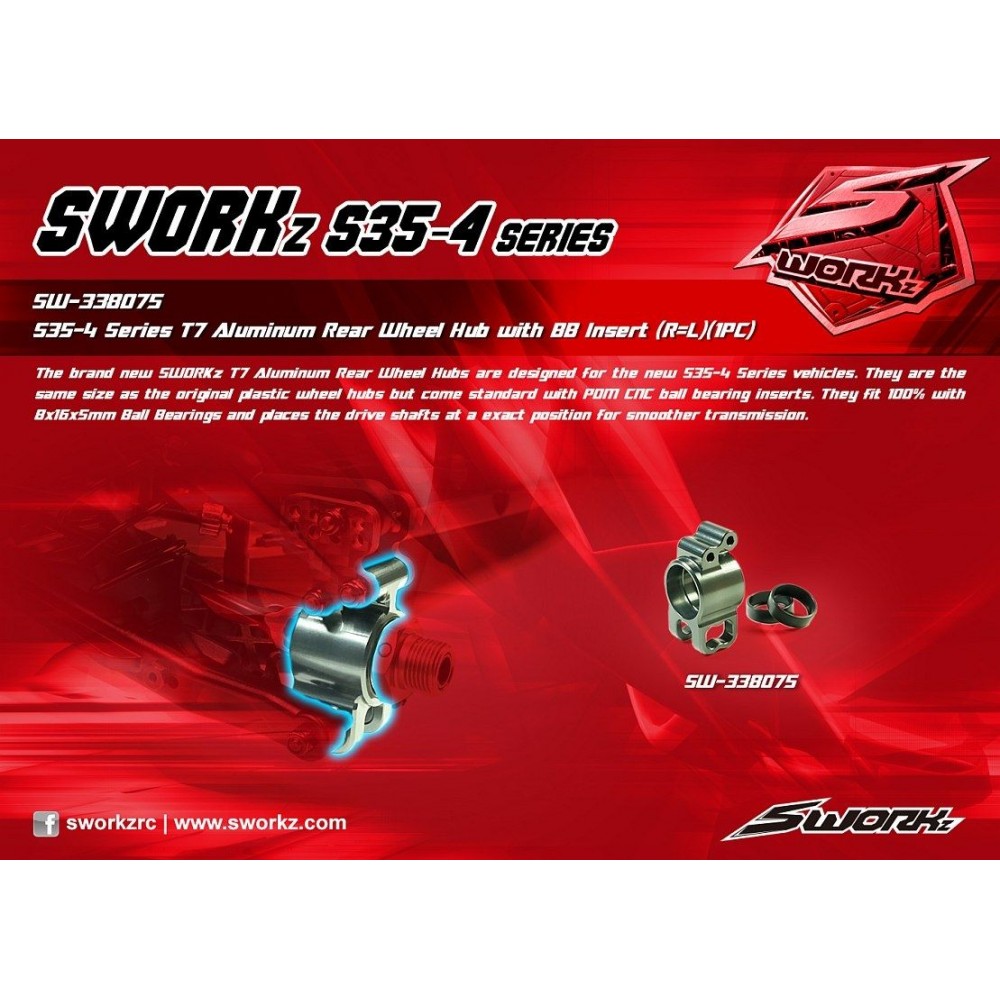 SWORKz T7075 zadní hliníkový náboj P L, včetně vložek, 1 ks.