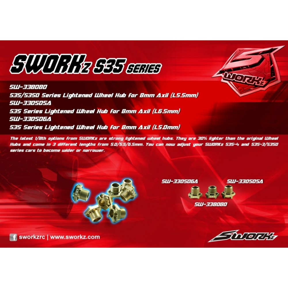 SWORKz hliníkové uanšeče kol 17mm, 5,5mm, pro 8mm hřídel, 2 ks.
