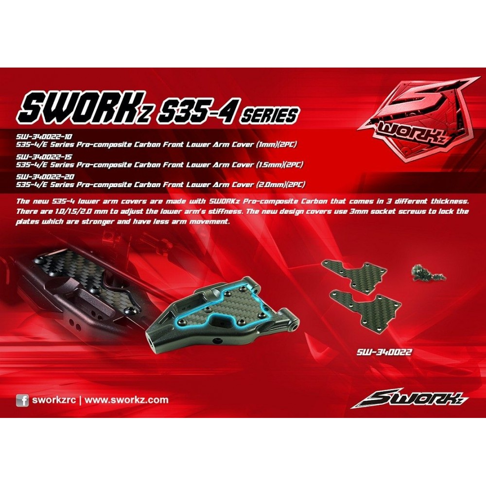 SWORKz uhlíková vzpěra spodní předního ramena, 2,0mm, včetně šroubů, 2 ks.