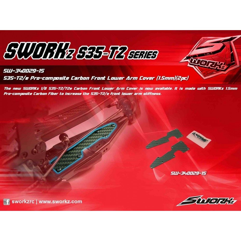 SWORKz uhlíková vzpěra předního spodního ramene, 1,5mm, včetně šroubů, 2 ks.
