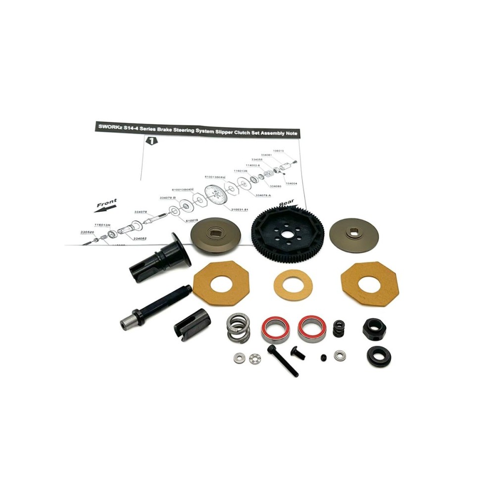 Systém oddělené kluzné spojky SWORKz S14-4, který umožňuje individuální nastavení síly přední brzdy. Tento systém zlepšuje rychlost v zatáčkách tím, že snižuje brždění přední nápravy, minimalizuje ponoření přední nápravy a umožňuje volnější pohyb kol při brzdění. Zlepšuje také dopady před zatáčkami tím, že zabraňuje zablokování předních kol. Je ideální pro kobercové závody s vysokou přilnavostí a tovární tým SWORKz jej úspěšně použil na zářijových závodech EFRA Euros 2024.