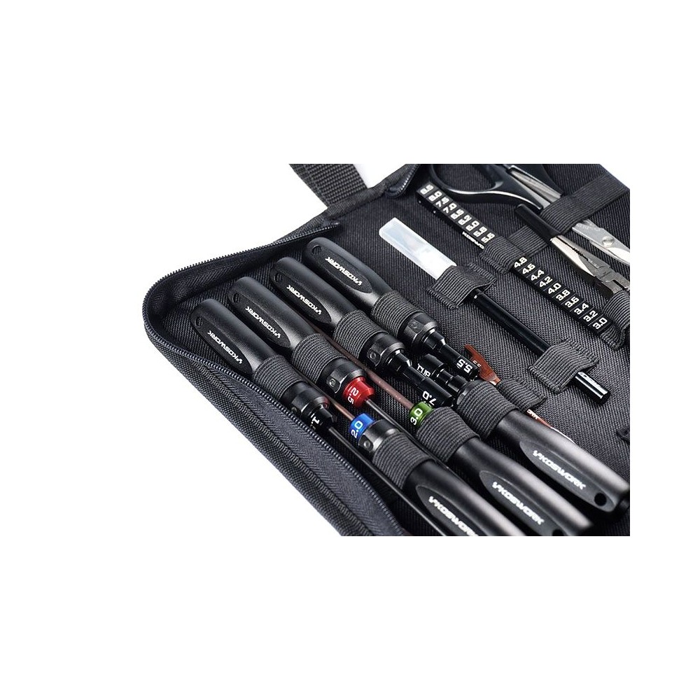 Celkové rozměry tašky 500x400x250 mm, kapacita 16 sad kol pro 1/8 buggy.