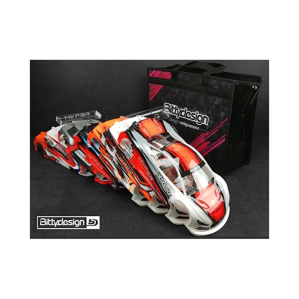 - Taška byla vyrobena tak, aby přepravovala 1/10 karoserie jakéhokoli typu (cestovní, FWD, GT) jak 190 mm, tak 200 mm
