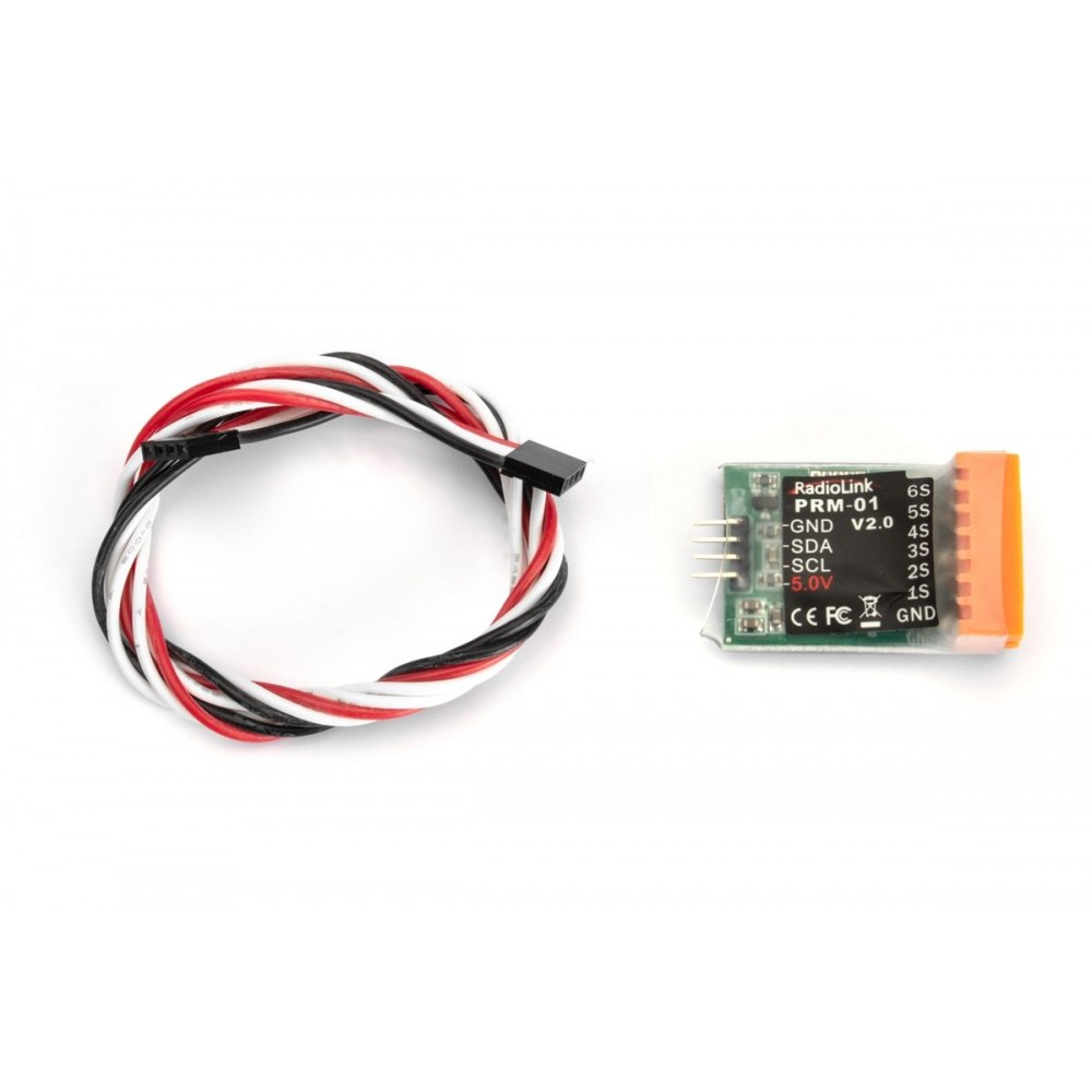 Telemetrický modul pro měření napětí 1S až 6S pohonného lithiového akumulátoru. Pro přijímače Radiolink R9DS a R12DS. K akumulátoru se připojuje pomocí servisního konektoru (JST-XH).