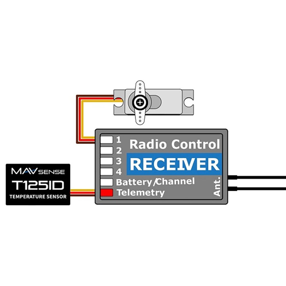 T125C je miniaturní teplotní senzor, který podporuje několik telemetrických protokolů. Lze jej použít k měření teploty elektromotoru, baterií a dalších prvků vašeho modelu v rozsahu -10 až +125°C.
