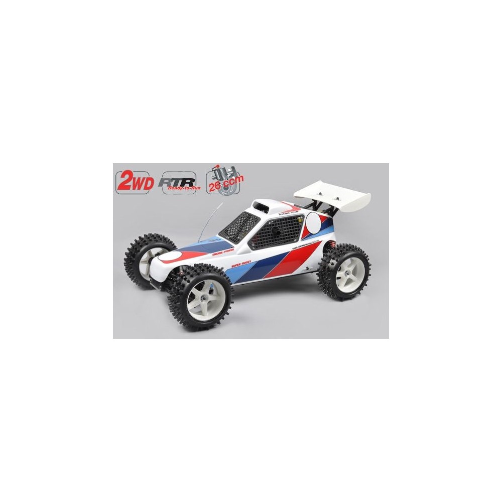 Sestavený model v 1/6 s bílou karoserií a náhonem zadní nápravy osazený spalovacím motorem ZENOAH 26ccm. Model vč. RC soupravy 2,4 GHz, připraveno k jízdě.