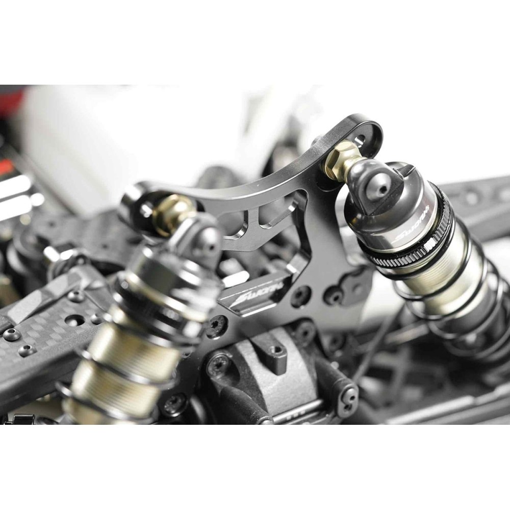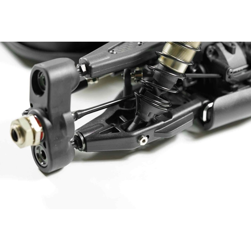 Model S35-4 EVO je vybaven tvrdě eloxovaným a odlehčeným hliníkovým podvozkem T7075 s novou konstrukcí s krátkým rozvorem kol, která byla dlouhodobě testována našimi továrními piloty a která zaručuje nejlepší vyvážení rychlosti předního i zadního zavěšení.
