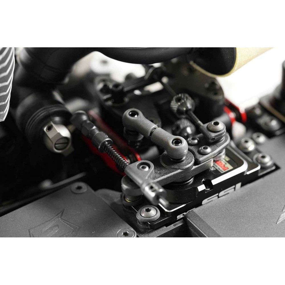 The newly developed Truggy HET differentials are included and provide traction that was not possible before. The new S35-T2 comes with a longer shock layout in the front and rear. The construction of the shocks is adapted to that new optimized layout. The smart holder for shock spring plates makes it almost impossible to lose them anymore. The steering geometry, with new Ackerman and steering plates, gives the driver a feeling of total control over the SWORKz S35-T2.