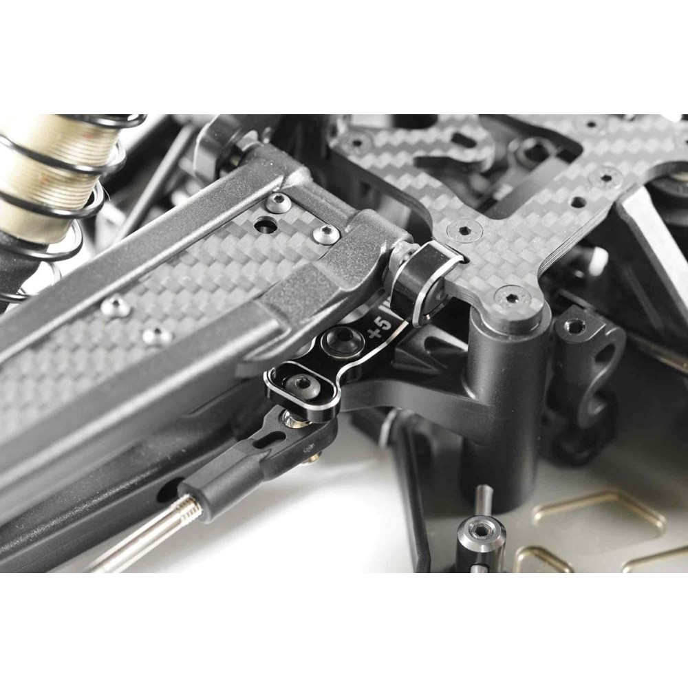 With the new toe-in plates, which now contain square inserts, you can adjust the geometry of your SWORKz S35-T2 to fit every track layout and track condition. The lower arms are made of a newly developed composite material and fit perfectly to the new chassis. Side guards were redesigned as well. With the new lightened wing support you can adjust various positions and the angle of the wing to give your SWORKz S35-T2 the best stability on the track. Together with the “Speed Rhinoceros III” body shell, perfect aerodynamics is achieved.