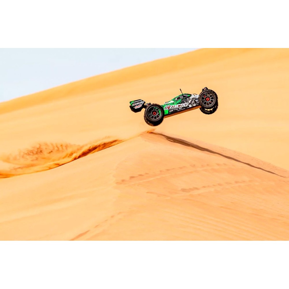 Továrně sestavený model 1/8 2WD buggy s unikátním poměrem cena/výkon. Obsahuje 2,4GHz vysílač/přijímač, střídavé kombo s podporou 4S LiPo a 25kg servo s kovovými převody.