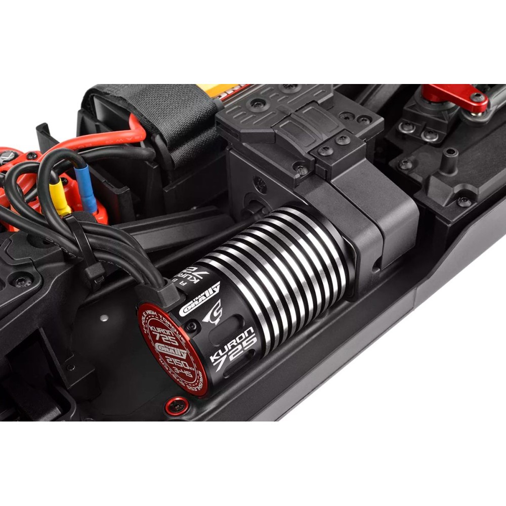 Hned po vybalení z krabice je model Syncro připraven vyrazit na trať. Jeho pokročilý regulátor PULSE G2 135 ESC poskytuje plynulý, ovladatelný výkon, zatímco střídavý motor Kuron 725 zajišťuje, že budete mít vždy dostatek rychlosti. Díky robustnímu digitálnímu servu HV7225, které se stará o řízení, si užijete přesné ovládání v jakémkoli terénu.