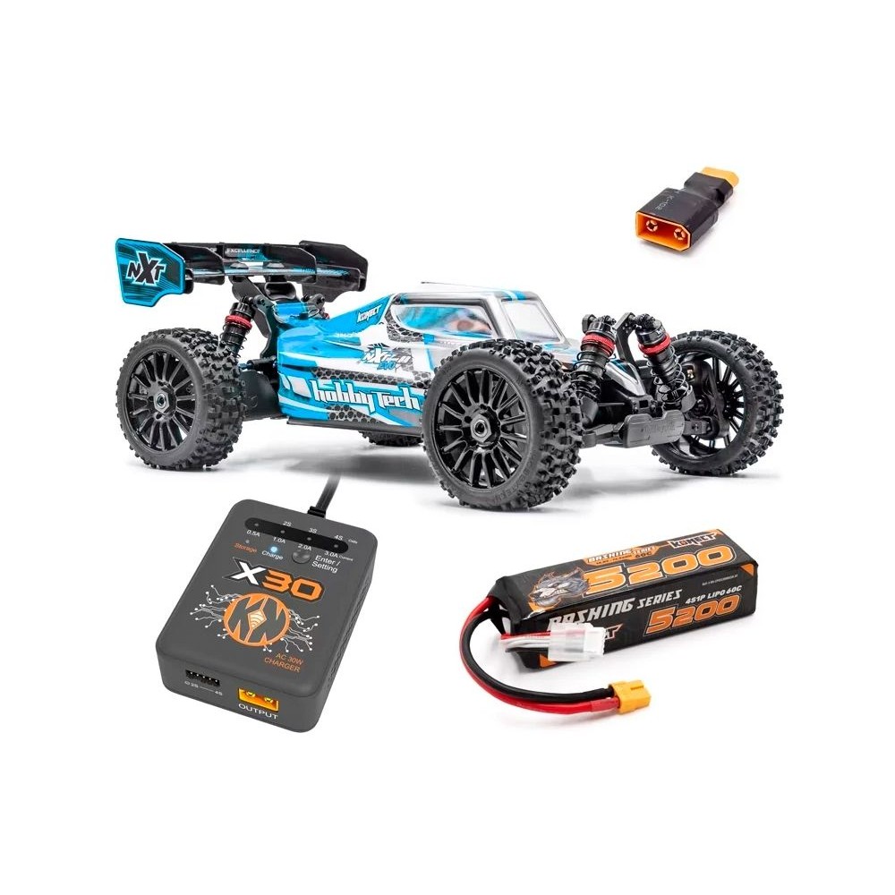 4WD buggy v měřítku 1/8 se střídavým pohonem 4S navržená a vyvinutá ve Francii na nejnovější platformě od HOBBYTECH. Set včetně elektroniky, karoserie a kol. Navíc pohonný akumulátor a nabíječ.