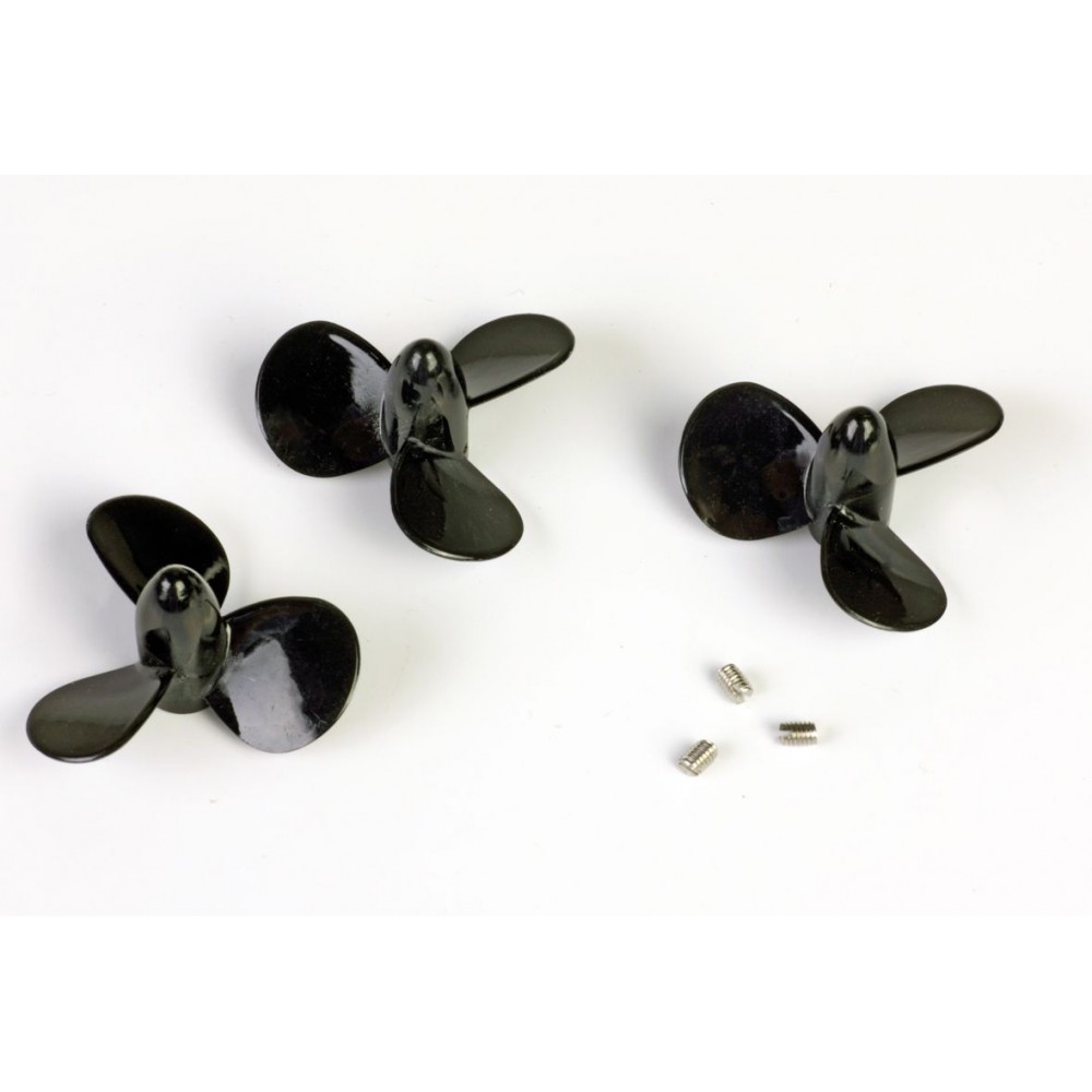 Třílistý lodní šroub Hydro levotočivý, stoupání 1,4x průměr, plast plněný uhlíkem, závit M4.