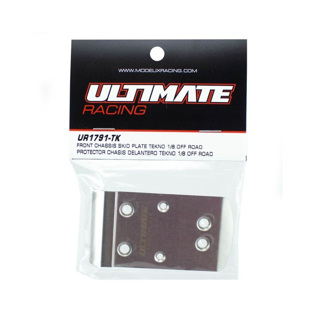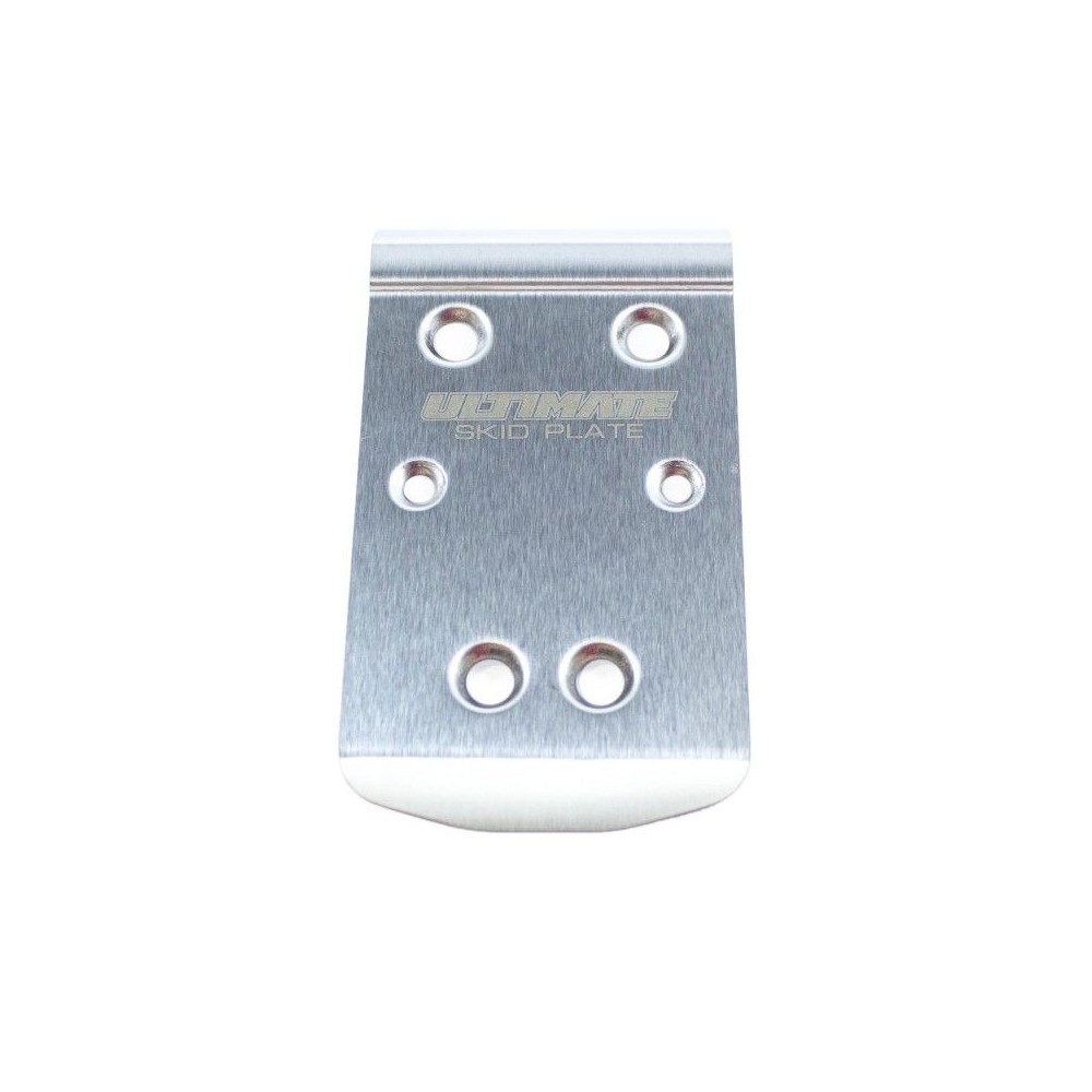 Přední ochranná deska podvozku Ultimate Racing pro Tekno 1/8 Off Road. Tato přední deska (skid plate), určená pro platformy NB48 2.0, 2.1 a 2.2, nabízí zvýšenou ochranu podvozku před opotřebením. Je vyrobena z 0,5mm nerezové oceli a je jedním z nejjednodušších způsobů ochrany vašeho vozidla. Balení obsahuje jednu desku stříbrné barvy s laserovým gravírováním Ultimate Skid Plate.